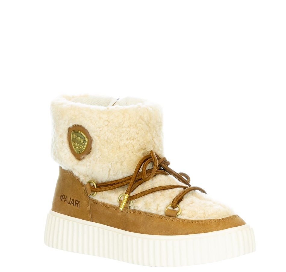 High-fashion meets winter performance with Pajar Canada's Ceria 6" slip-on sneaker boot, expertly crafted with double-face shearling shaft and a waxy nubuck leather mudguard. You'll love the easy entry with its heavy-duty YKK inside zip, the upper is entirely seam-sealed and comfort rated to -30 C, and features our weather proven Pajar-Tex waterproof membrane bootie to keep your feet snug all winter long! The signature gripping Pajar Canada ultra-lightweight Crystal Snow phylon and rubber sole will get you through icy streets in uncompromised style, and keeping you surefooted all the while. Our premium removable