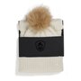 Just in time for the cooler weather, you're going to look great and stay warm wearing the Kendra hat and mitten set from Pajar. This includes ladies textured knit mittens with a fold up cuff, branded with a small Pajar logo patch. The hat has a faux fur removable pom-pom, also with a branded Pajar logo patch.