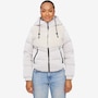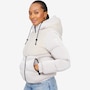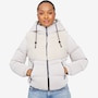 Turn heads this season with the Nephele short puffer in stunning champagne. Crafted with a water-repellent finish, this mixed media design blends fashion and function effortlessly. The fixed hood features plush faux shearling paneling for a luxe touch, while glossy Aquaguard zipper pockets keep essentials secure and stylish. Adjustable faux leather drawcords add a refined detail, and the loose fit means comfort without compromising shape. Equally great for city strolls or weekend escapes, the Nephele delivers warmth, elegance, and versatility in one sleek silhouette.