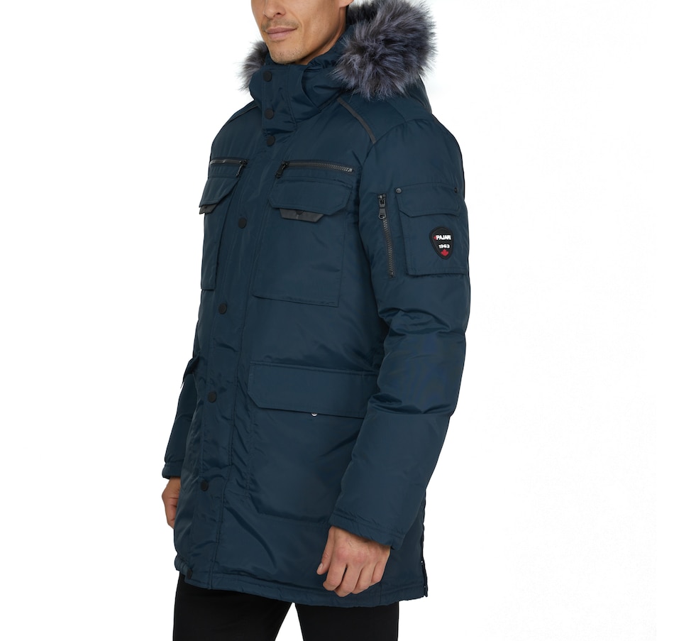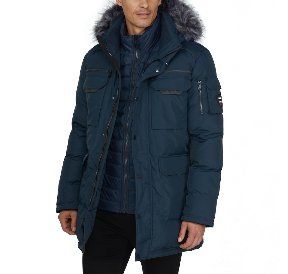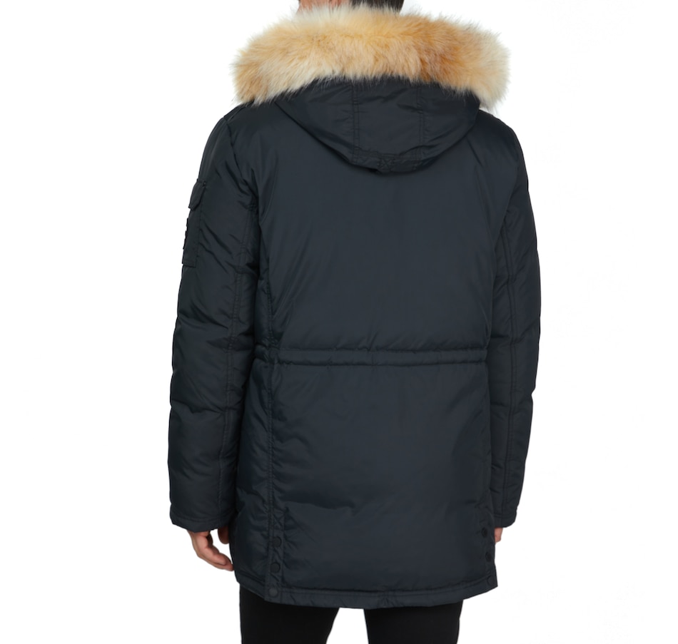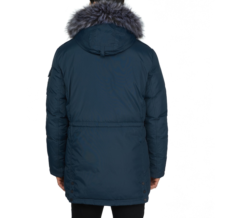 • Care: remove fur trim before washing; machine separately on gentle cycle in cold water; do not dry clean; use mild detergent; do not use fabric softener; do not bleach; tumble dry at low setting with two clean tennis balls; do not iron