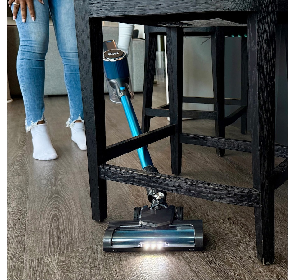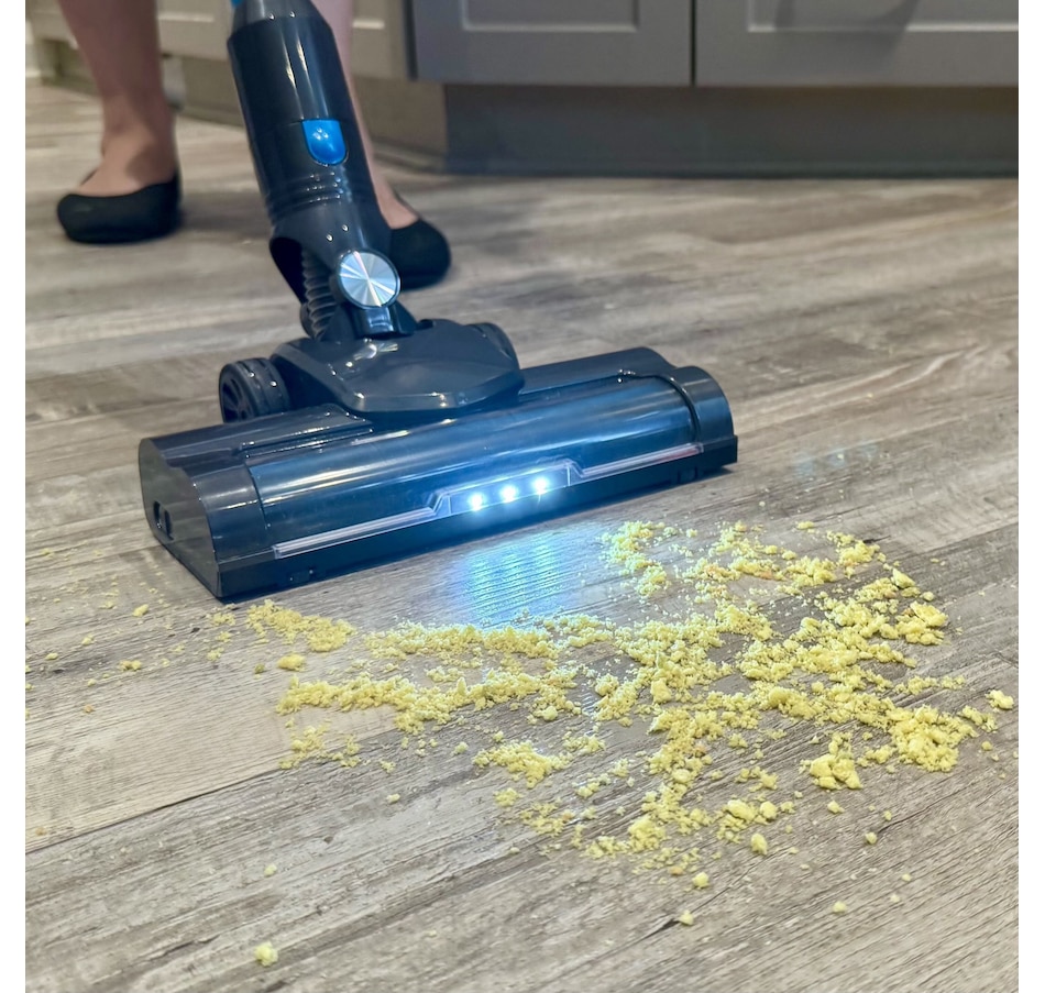 • LED Headlights illuminate the cleaning path to easily see under furniture and in tight spaces
