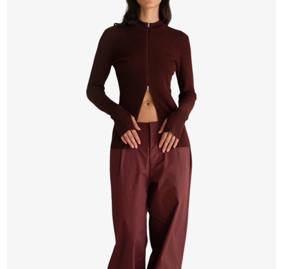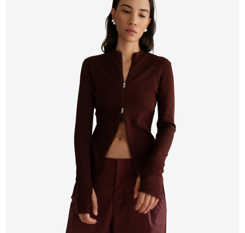 Offering sporty sophistication, this standout ribbed zip-up jacket is made for cooler days. With full-length sleeves and a high collar, Gabrielle's shape skims the body while staying warm, soft, and stylish.