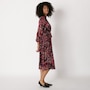 • Floral print, sheer accents,  boat neckline