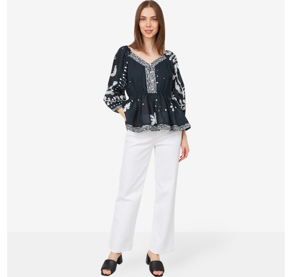 Centre every look in breezy style wearing this fabulous printed puff sleeve top from Parker & Rowe.
