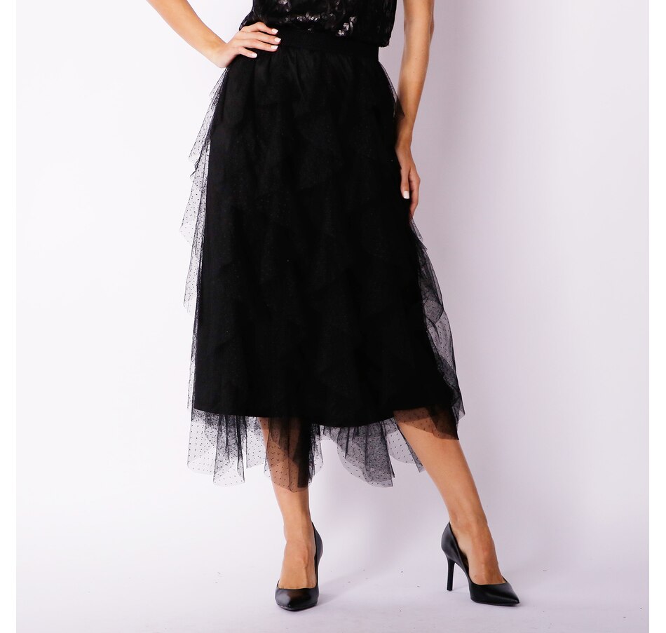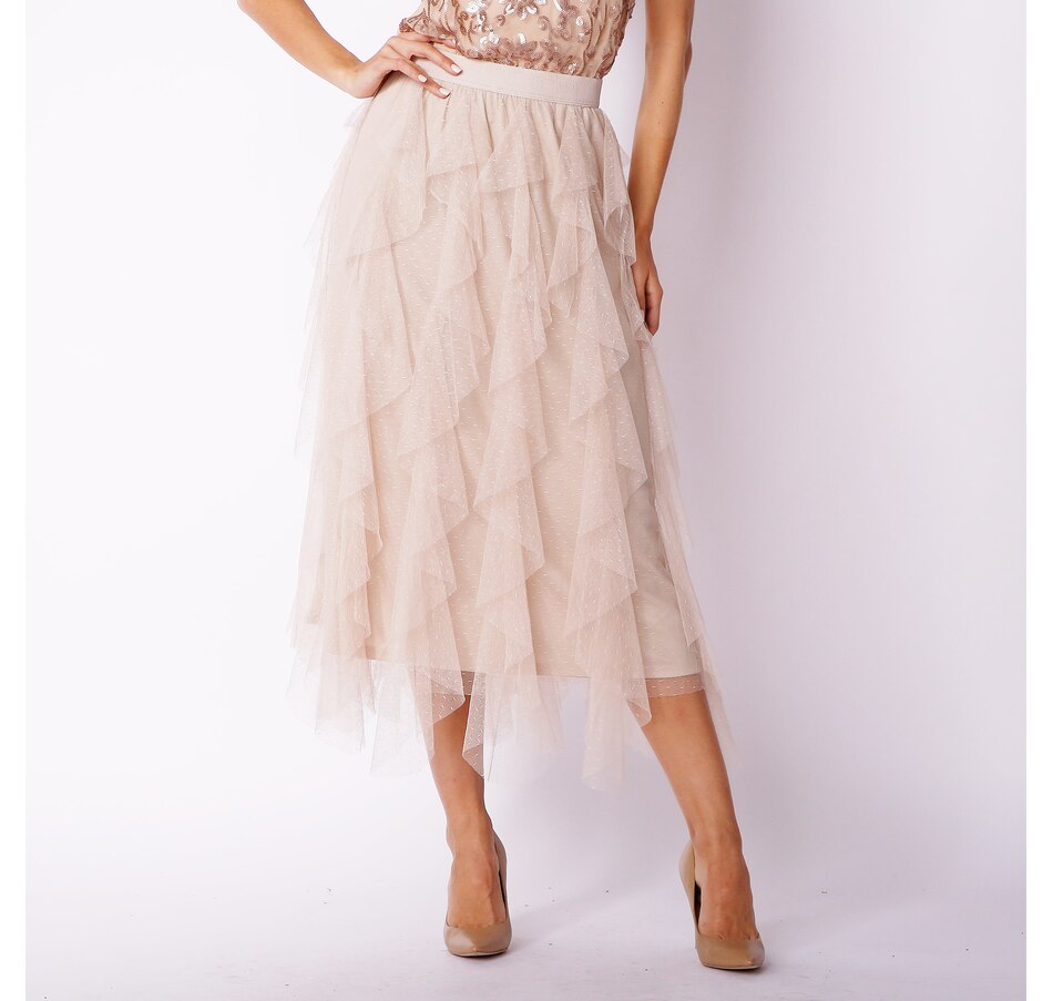 Add something stylish and fabulous to your look with this ruffle tulle skirt from Parker & Rowe.