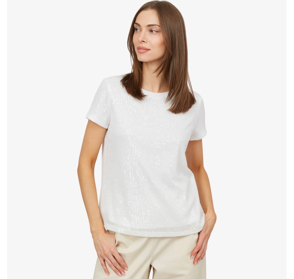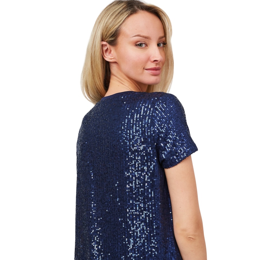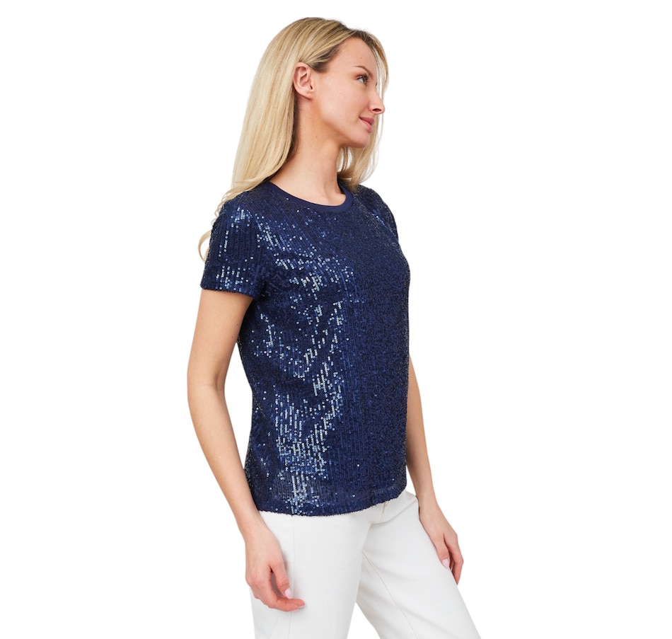 Beautiful and sophisticated, you'll centre every look in dazzling style wearing this sequin tee from Parker & Rowe.