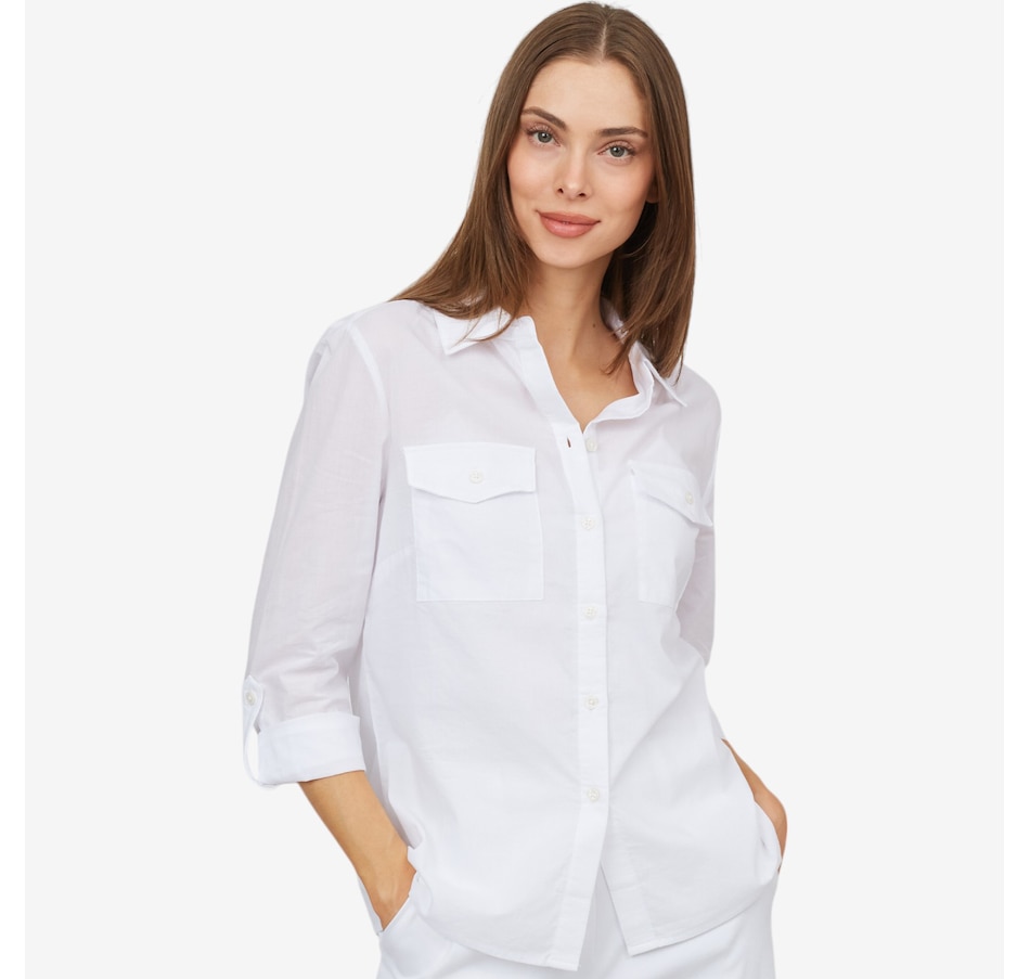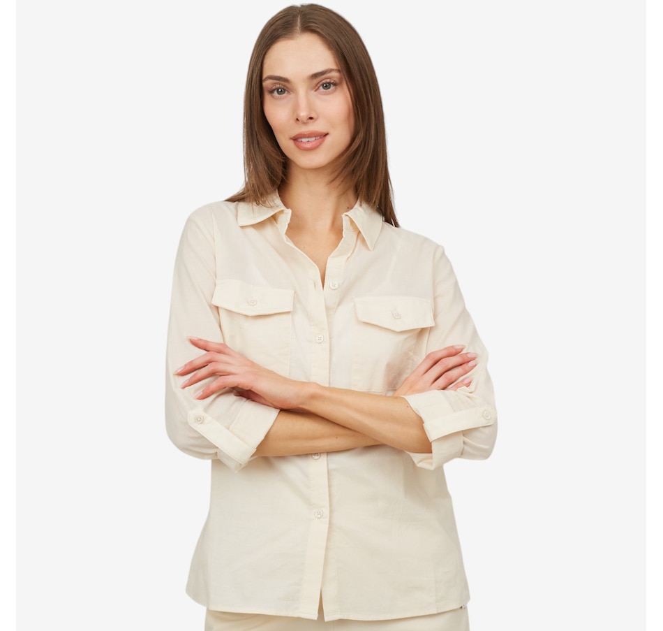 Versatile and great for spring wear, you'll centre every look in easy style wearing this utility shirt from Parker & Rowe.