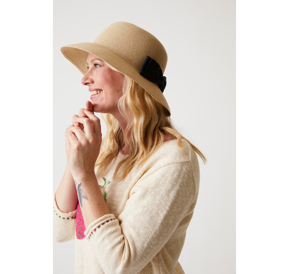 This packable, adjustable bucket hat with black bow detail from Parkhurst is lined with SunGuard. SunGuard offers comfort and breathability and provides up to 50 times your natural protection from the sun's rays. It is as fashionable as it is durable!