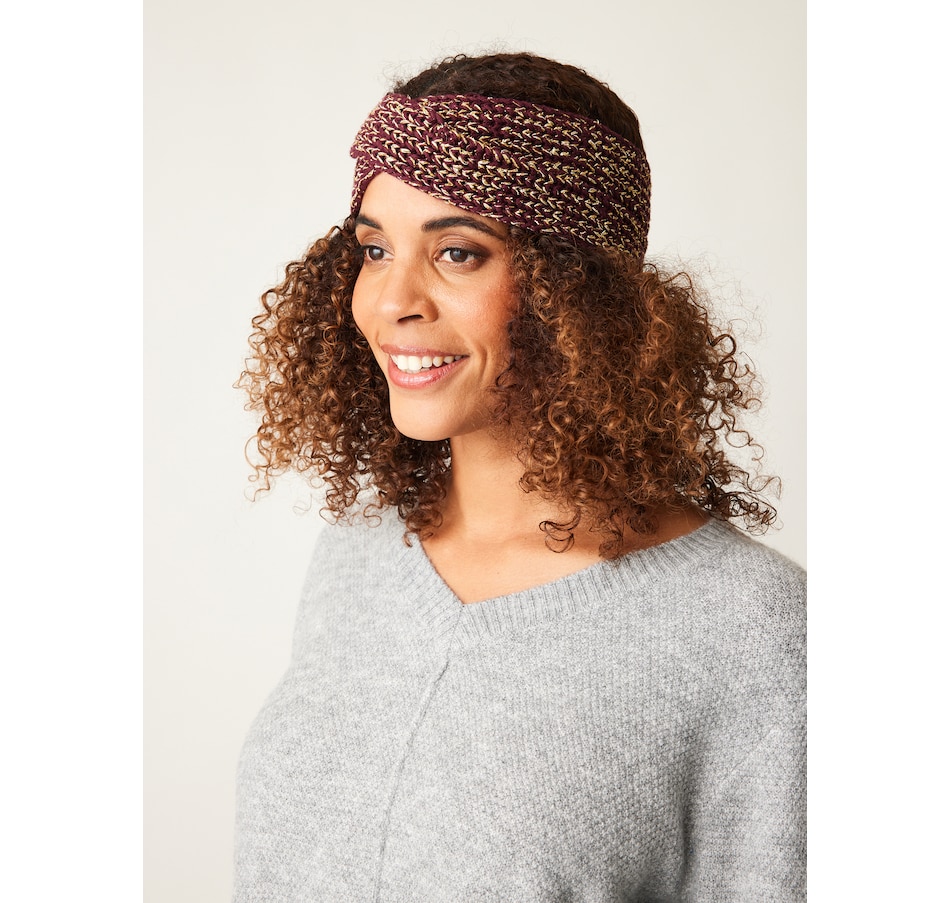 Stay warm and on trend with this criss cross design headband from Parkhurst, with full ear coverage. Its warm lurex with metallic threads give it a sparkling, shimmering look.