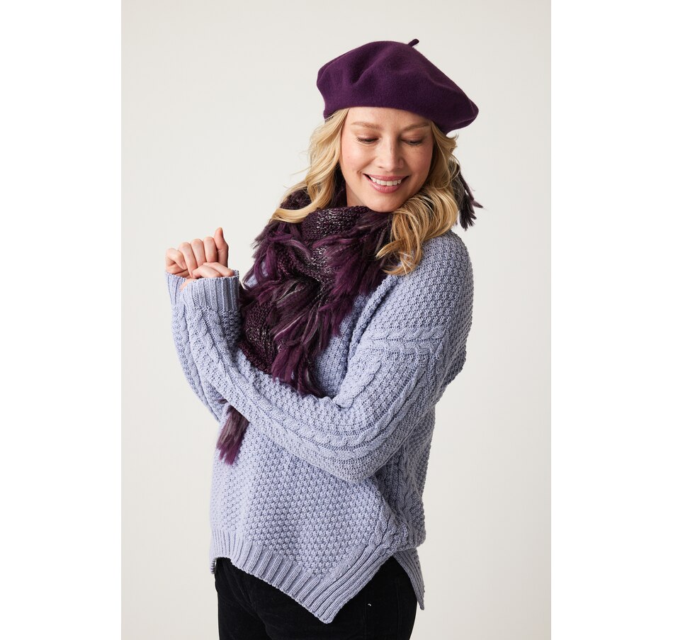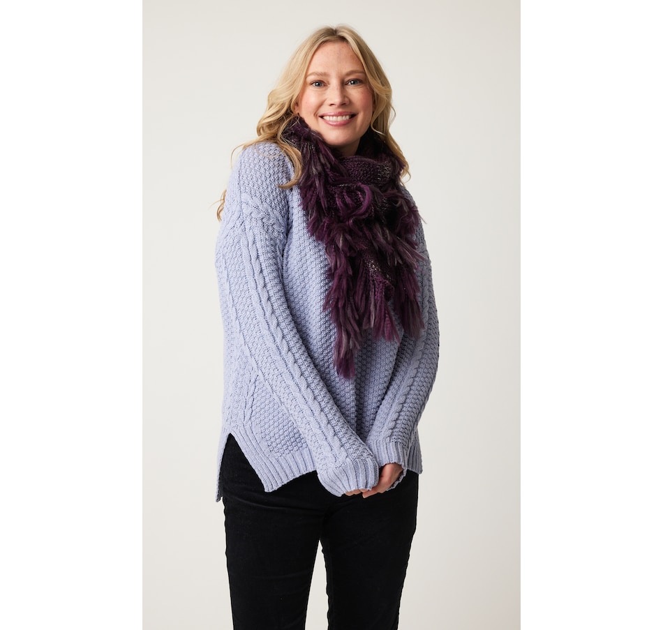 You'll accessorize your cool weather look in elevated style with this beautiful Twilight fringe scarf from Parkhurst.