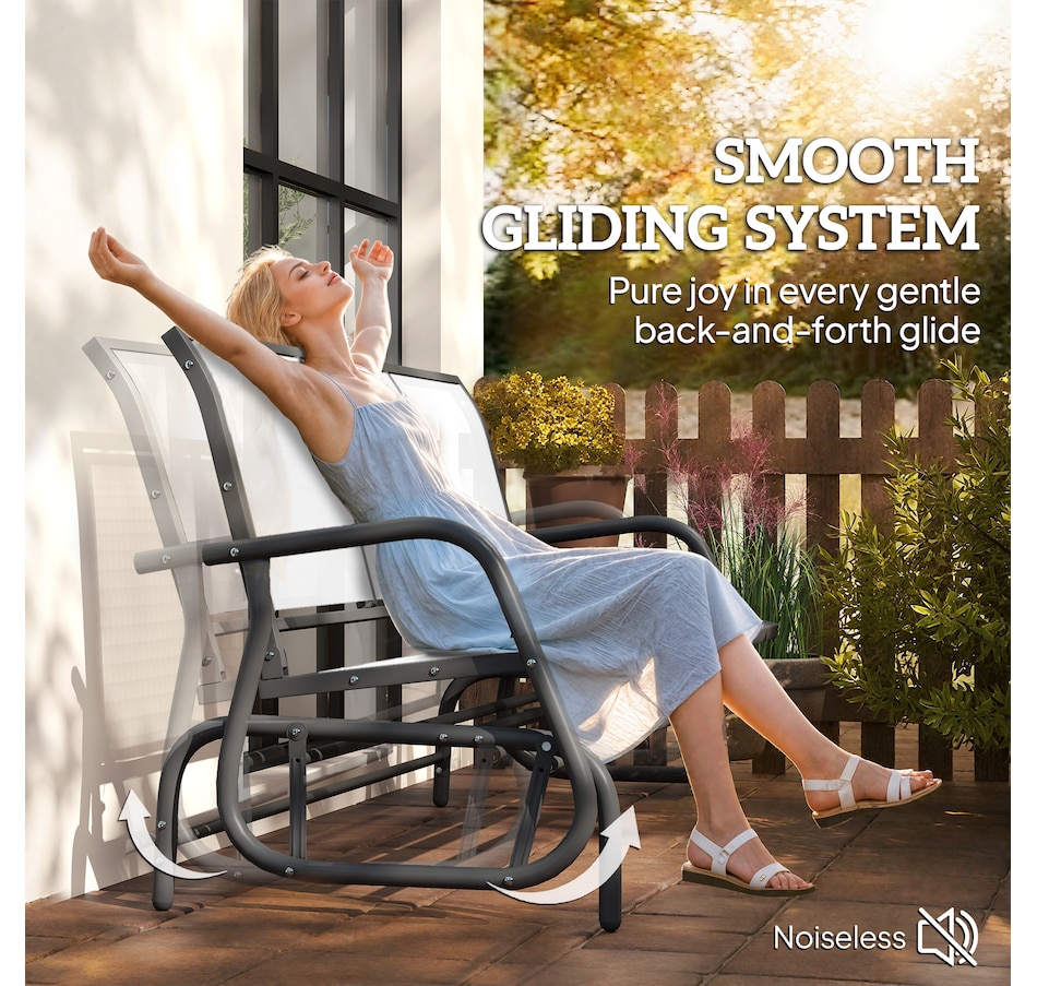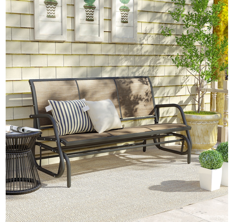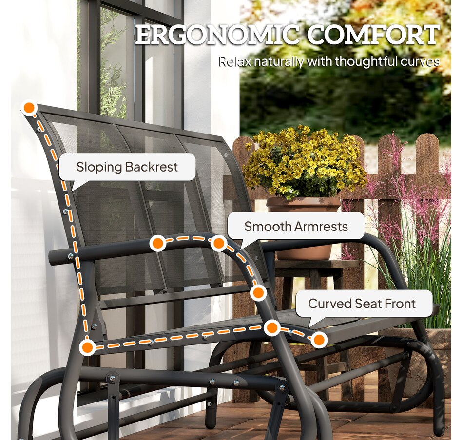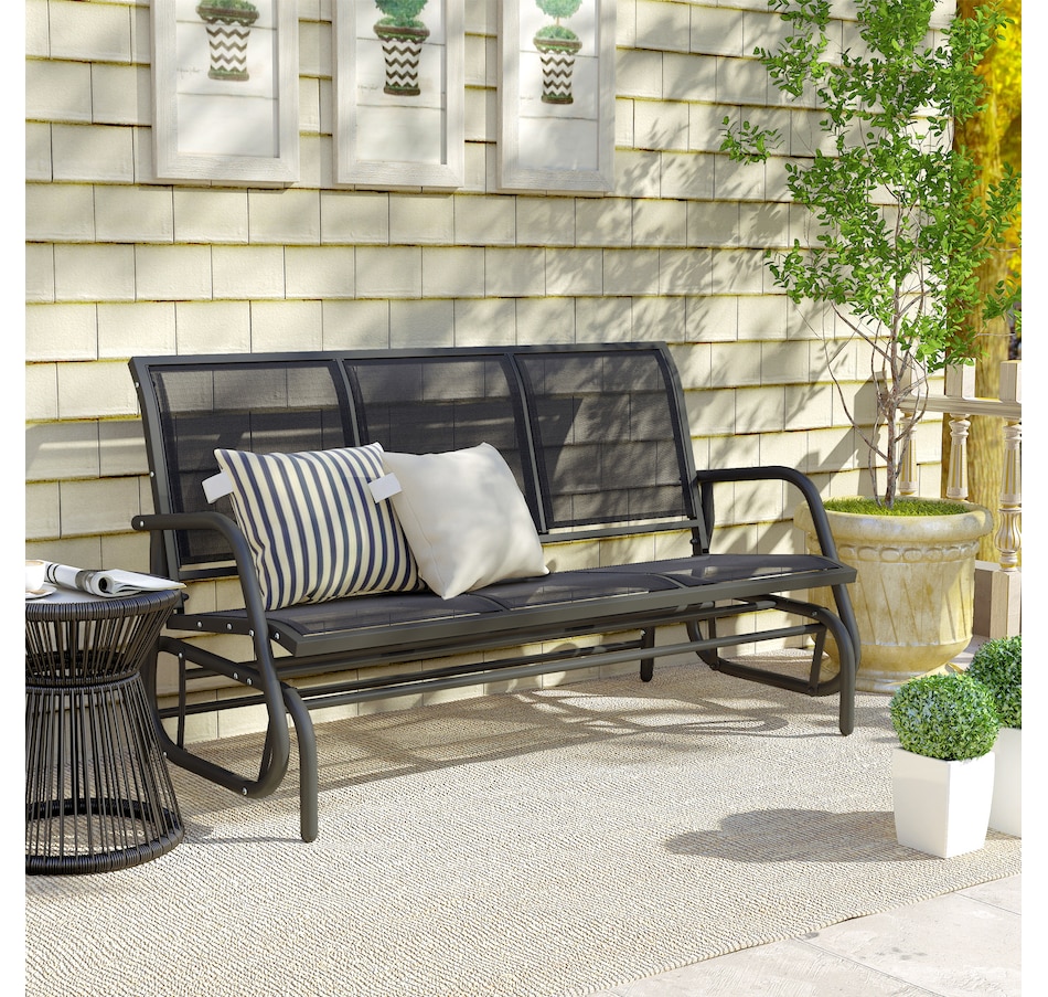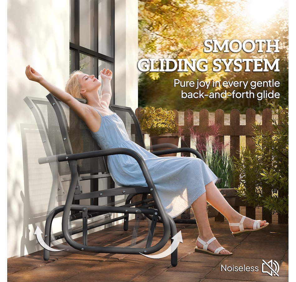 Unwind outdoors the effortlessly smooth way with this Outsunny glider. Using powder coated metal for a strong and durable frame, this outdoor swing glider is covered with mesh fabric for a breathable seat and back. Curved back and armrests of the glider b