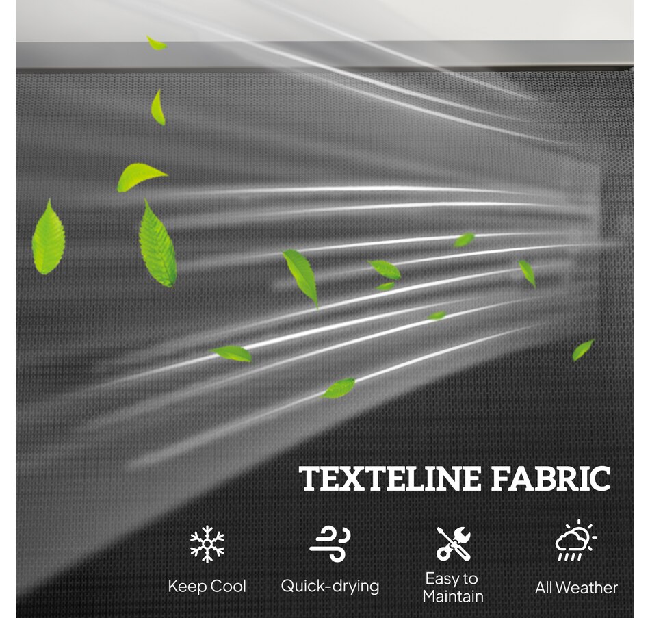 â—Ź Texteline seat and back panels are UV and water resistant and easy to clean;