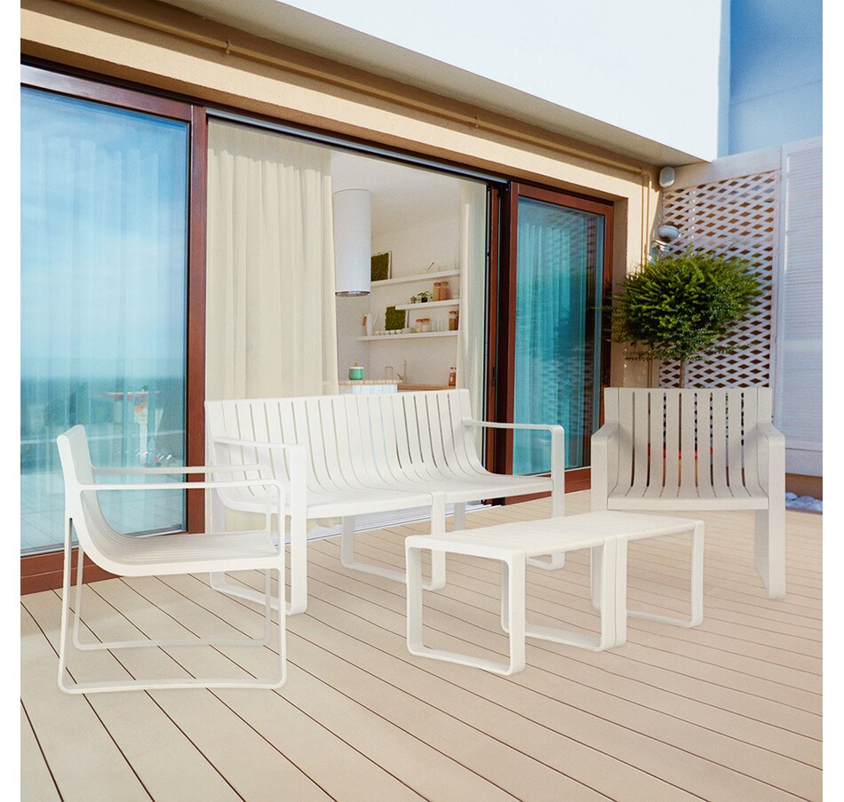 This fantastic Pioneer conversation set is composed of 50% GRS PP plastic with anti-UV. The GRS certified plastic is mixed 50% GRS plastic and 50% virgin material; this allows for quality and stability, and follows the requirements for product to be certified GRS. It also offers easy care and maintenance.