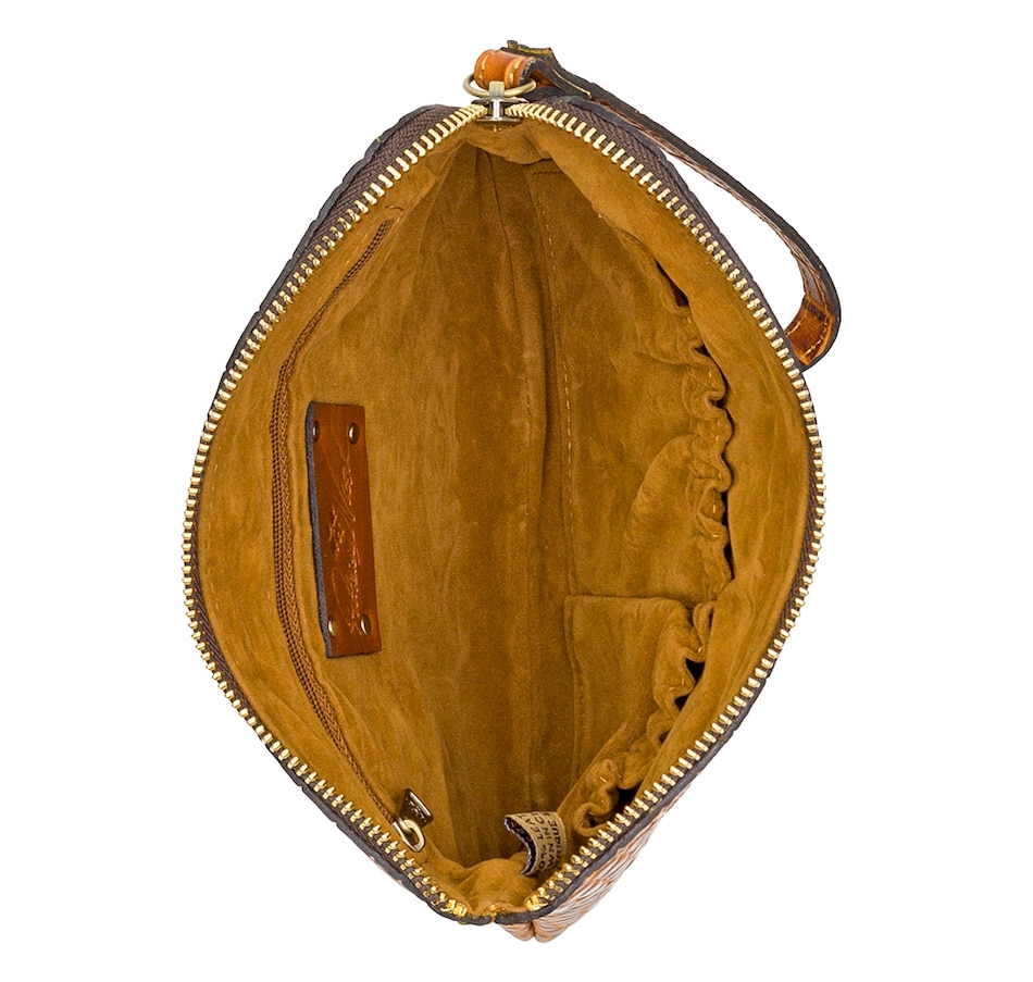 • Interior: 2 slip pockets, 1 zip pocket, faux suede velvety fabric