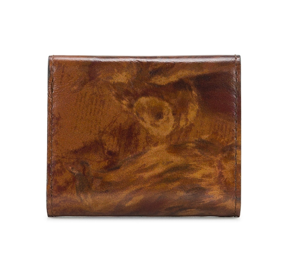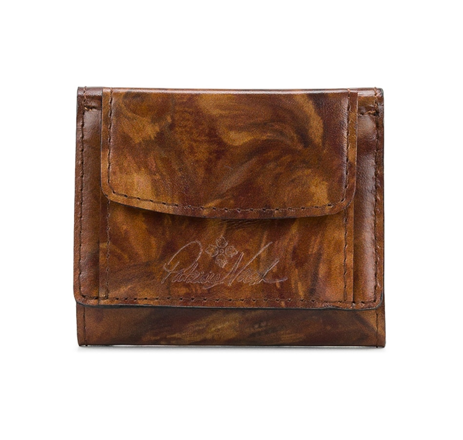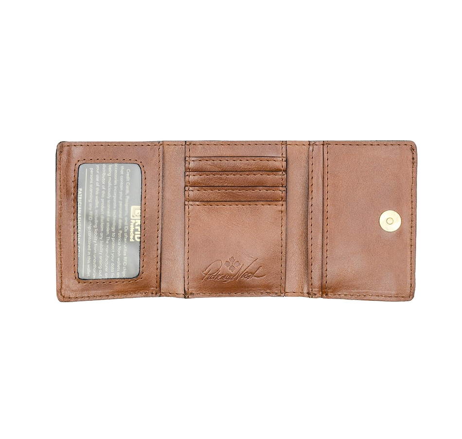 This wonderfully designed wallet has ideal storage features and a dainty size that fits into a pocket, a bag, or for carrying on its own. It features a tri-fold design with a magnetic snap closure.