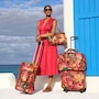 - Exterior zip pocket, 360-degree spinner wheels, zippered main compartment