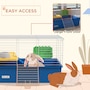 Watch pets thrive in this PawHut ferret cage – a wonderful home for small animals. A colourful safe haven, it's made with a cosy living area, protected by metal wire caging, keeping them safely inside and allowing air to flow through. Inside features a small platform with a food bowl, a water bottle, a ramp and a hay feeder, providing everything they need. Plus, there's a deep base, which collects dirt and debris, keeping their space clean and comfortable.
