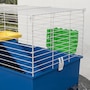 ● Features a platform with a ramp, a hay feeder, a water bottle and a food dish;