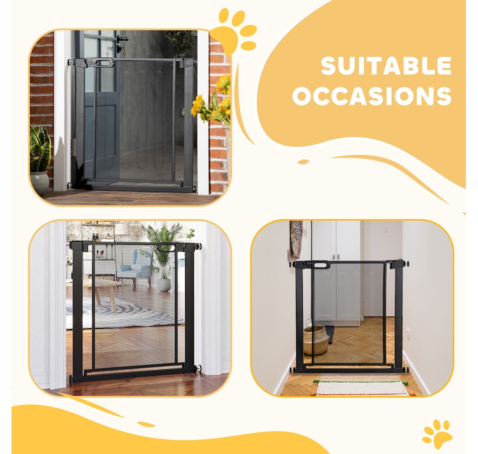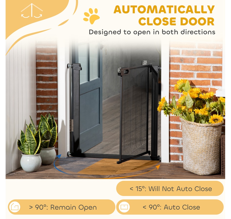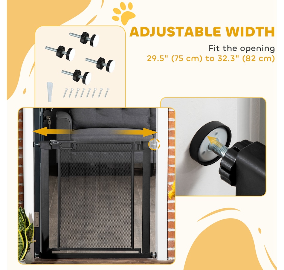 Gardez les chiens hors des zones restreintes avec cette barrière pour chiots PawHut. Convient pour les couloirs, les portes et les escaliers, il a une largeur réglable de 29,5"-32,3" (75-82 cm) - parfait pour les ouvertures de différentes tailles. Ce portillon pour escalier se ferme automatiquement s'il est ouvert à moins de 90°. Il est monté sous pression, ce qui le rend facile à installer. un moyen sûr et efficace d'empêcher les animaux de compagnie d'aller là où ils ne devraient pas.
