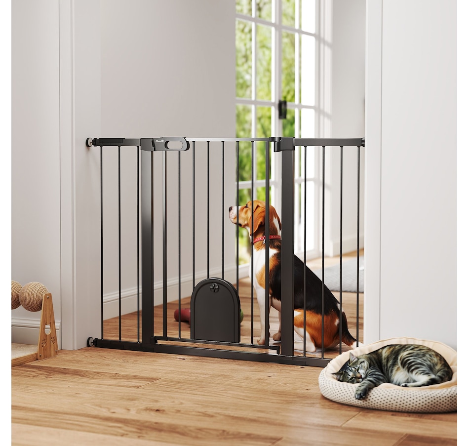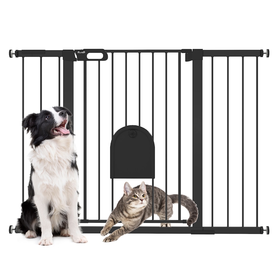 30"-52" Extra Wide Pet Gate Barrier with Small Door, 35"H, Black