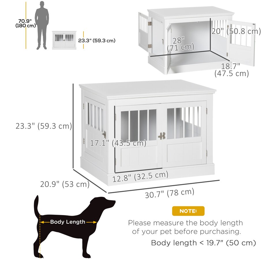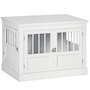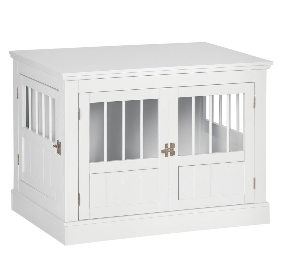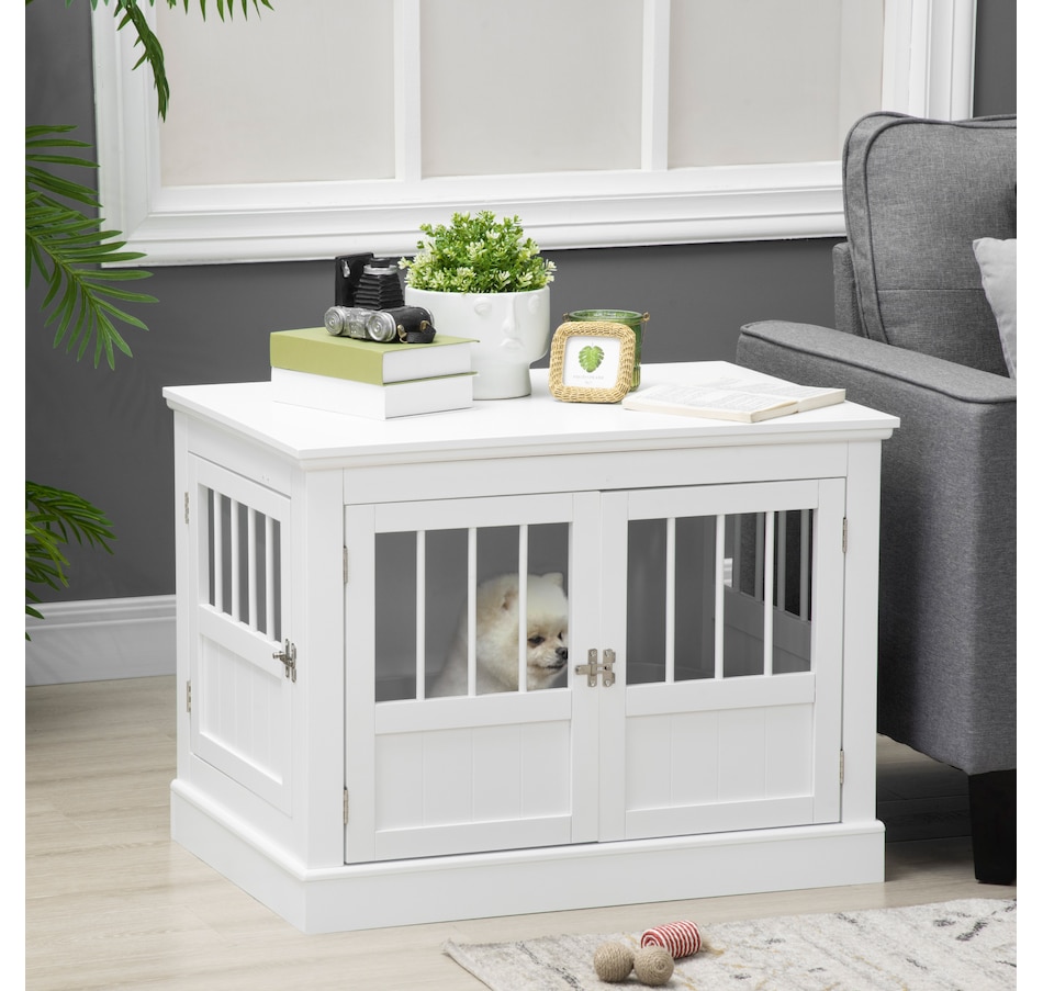 Transform your pet's space with the sleek PawHut Dog Crate Furniture. This stylish piece doubles as an elegant end table, blending seamlessly with your decor while providing a cozy hideaway for your furry friend. Enjoy the practicality of a dog kennel and the aesthetics of modern furniture. Suitable for creating a comfortable and inviting home atmosphere.