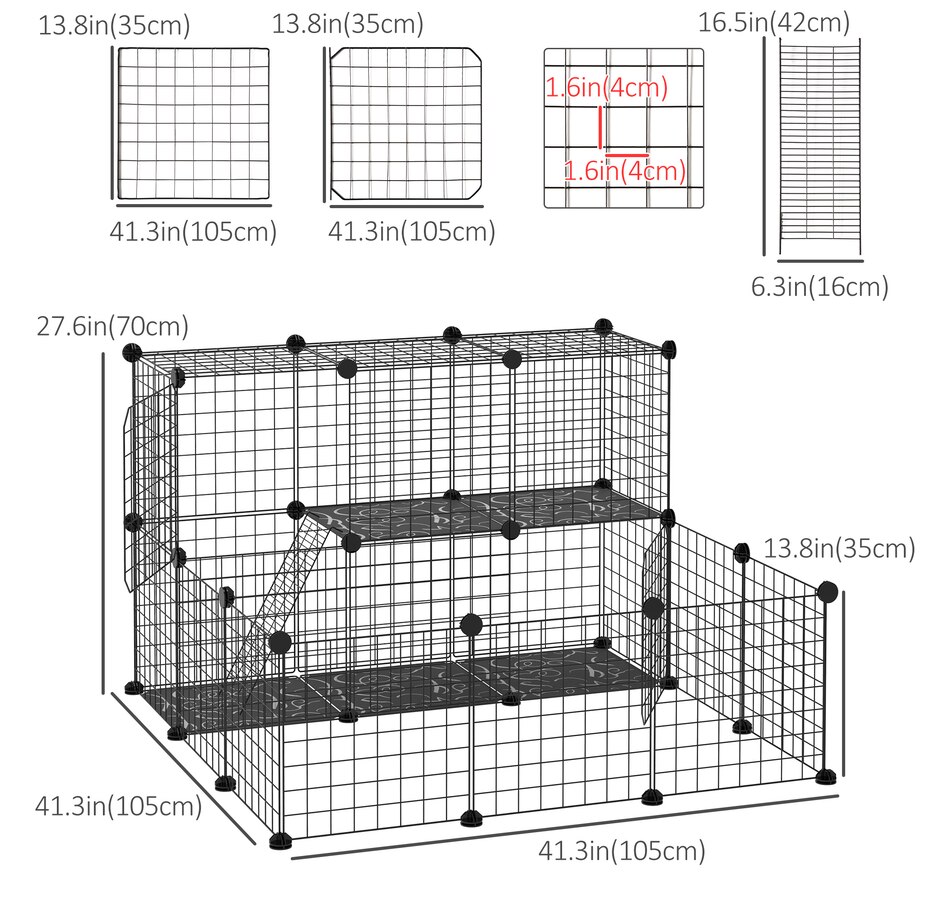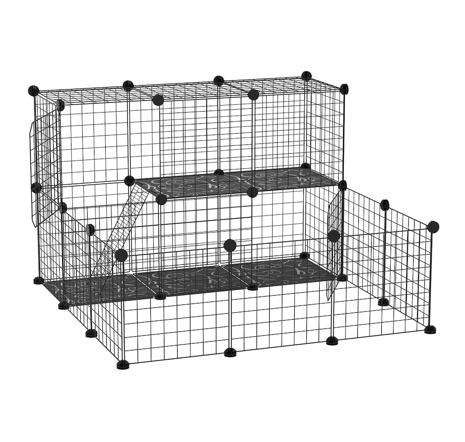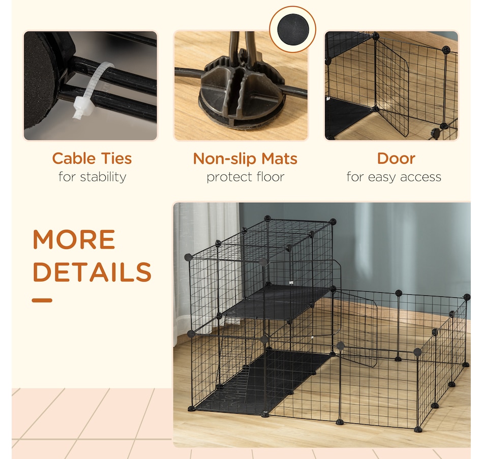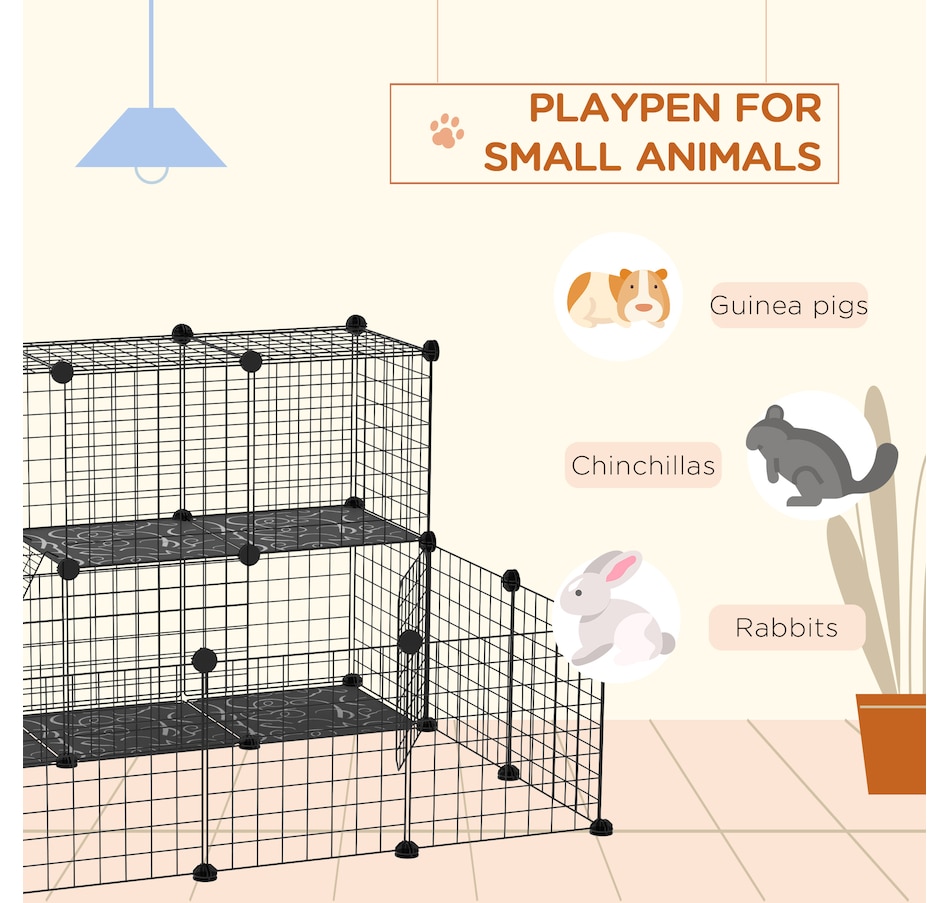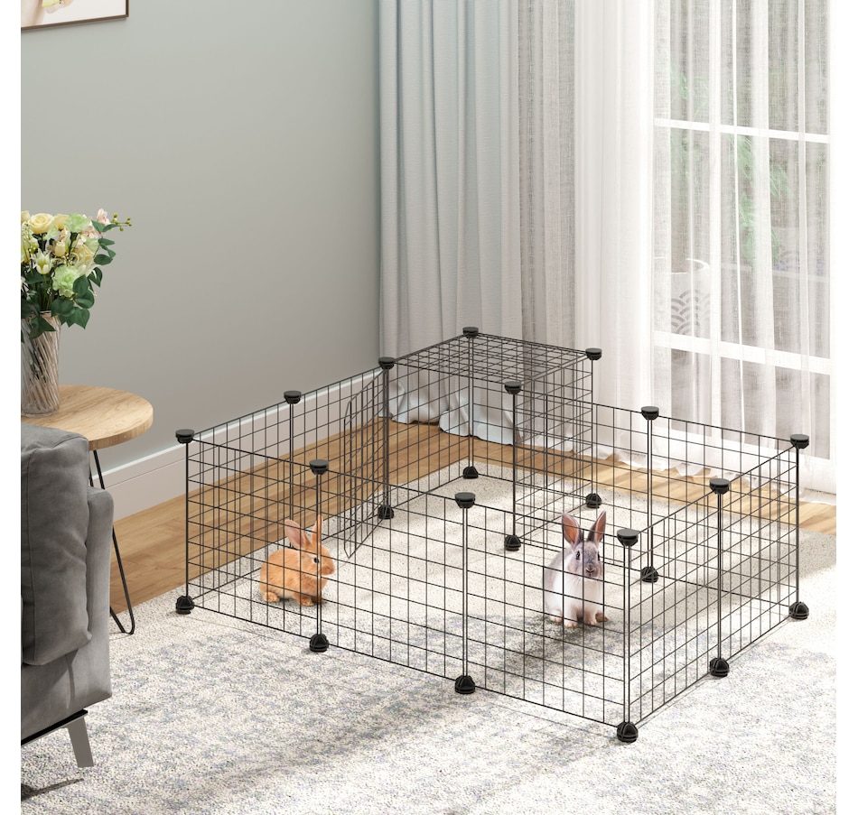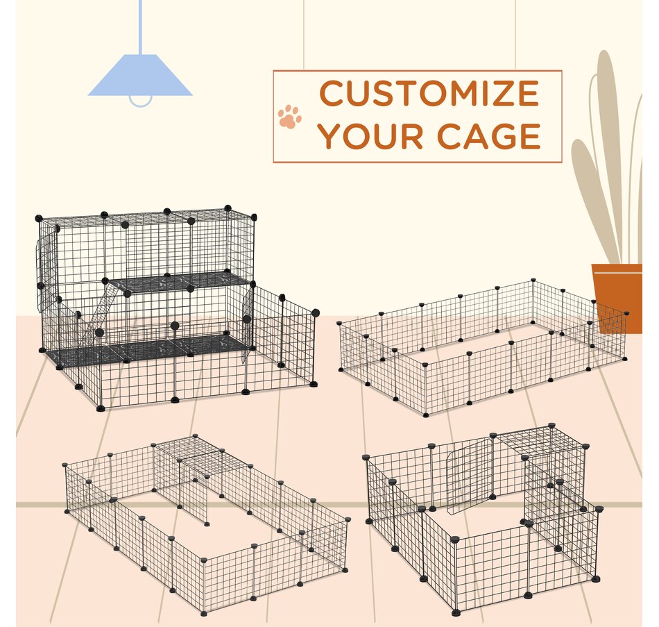 This playpen from PawHut is designed to build a fantastic home for you lovely pets. It provides a large space for small animals to have fun and it is easy to keep an eye on them. The multi-angle connectors make the playpen easy to set up and take down. You can build it into various configurations to adapt to your room's layout and change its shape as you want. Suitable for most small animals such as bunny, chinchilla, hedgehog, guinea pig, great for giving you peace of mind with your animals.