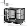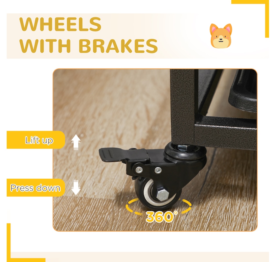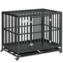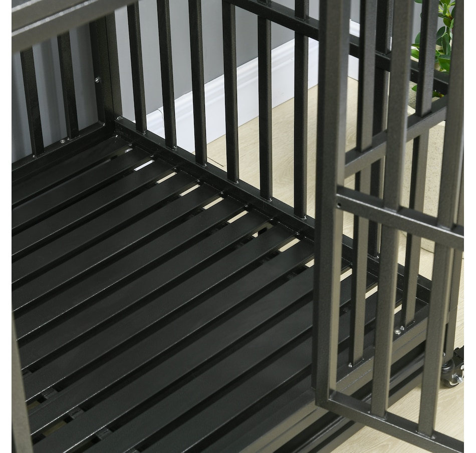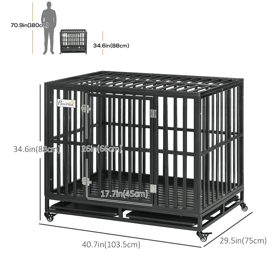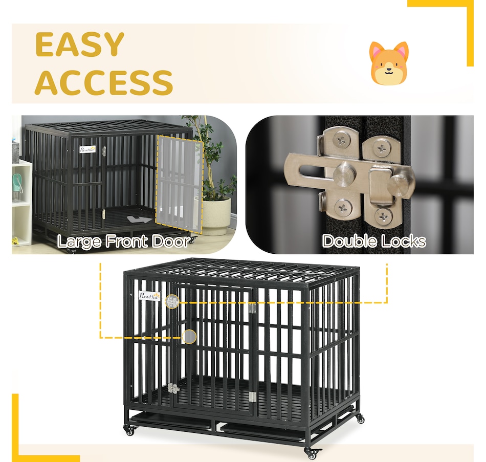 This heavy-duty dog kennel from PawHut provides a comfortable and secure home for your furry friend. Constructed with solid steel gauge tubes and frame. Each bar is securely welded to the frame for strength and durability. Two convenient slide-out panels are included for easy cleaning and maintenance. This dog kennel has rolling caster wheels for easy transportation and movement. This crate is a great tool for keeping your pets safe and secure while you are away.