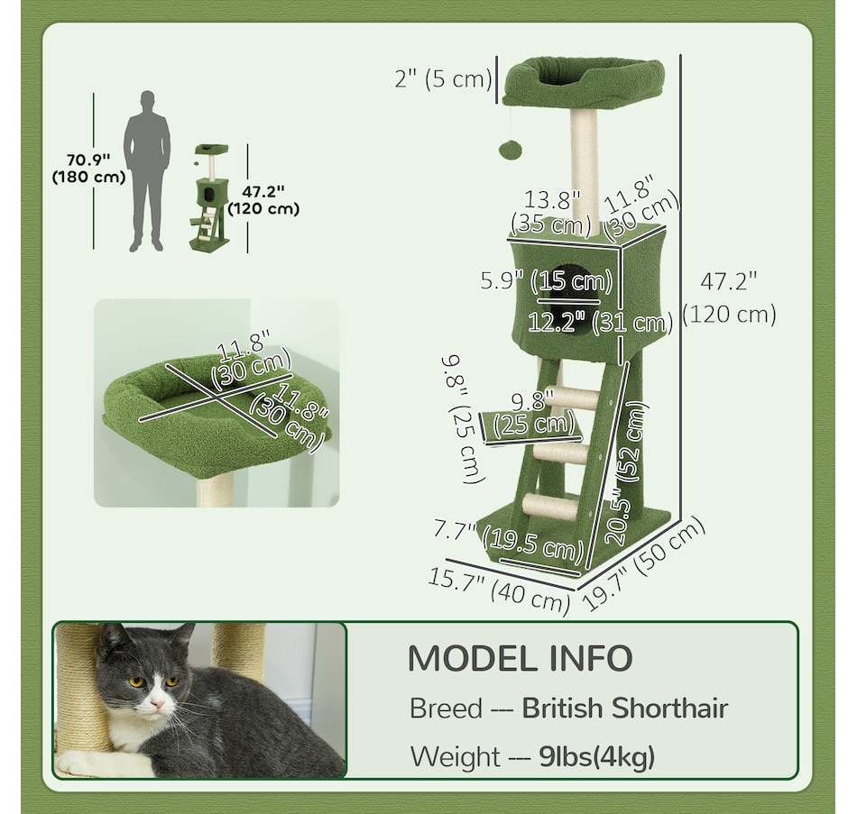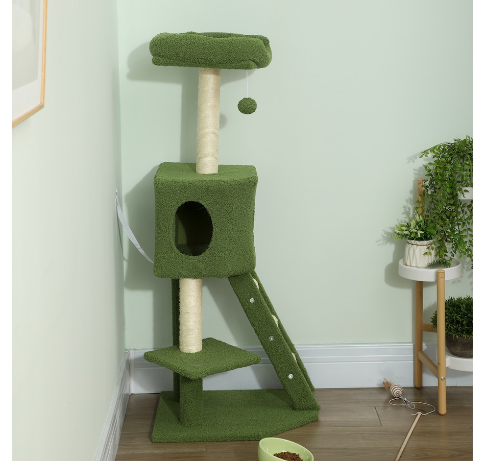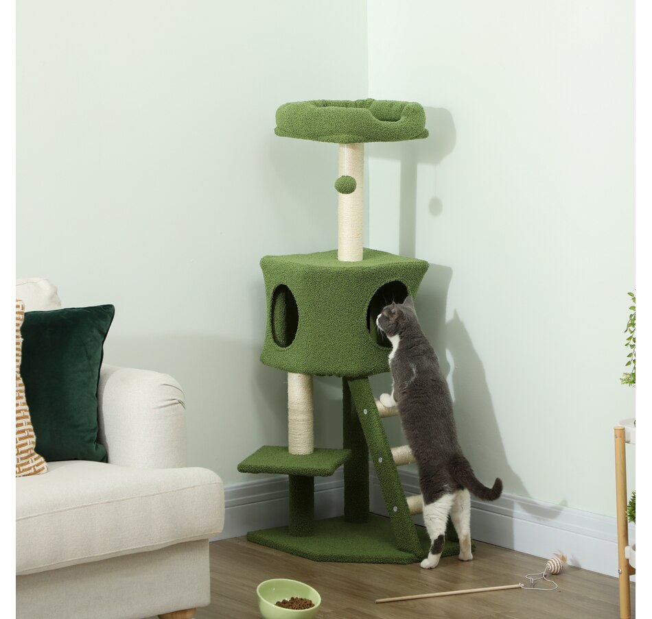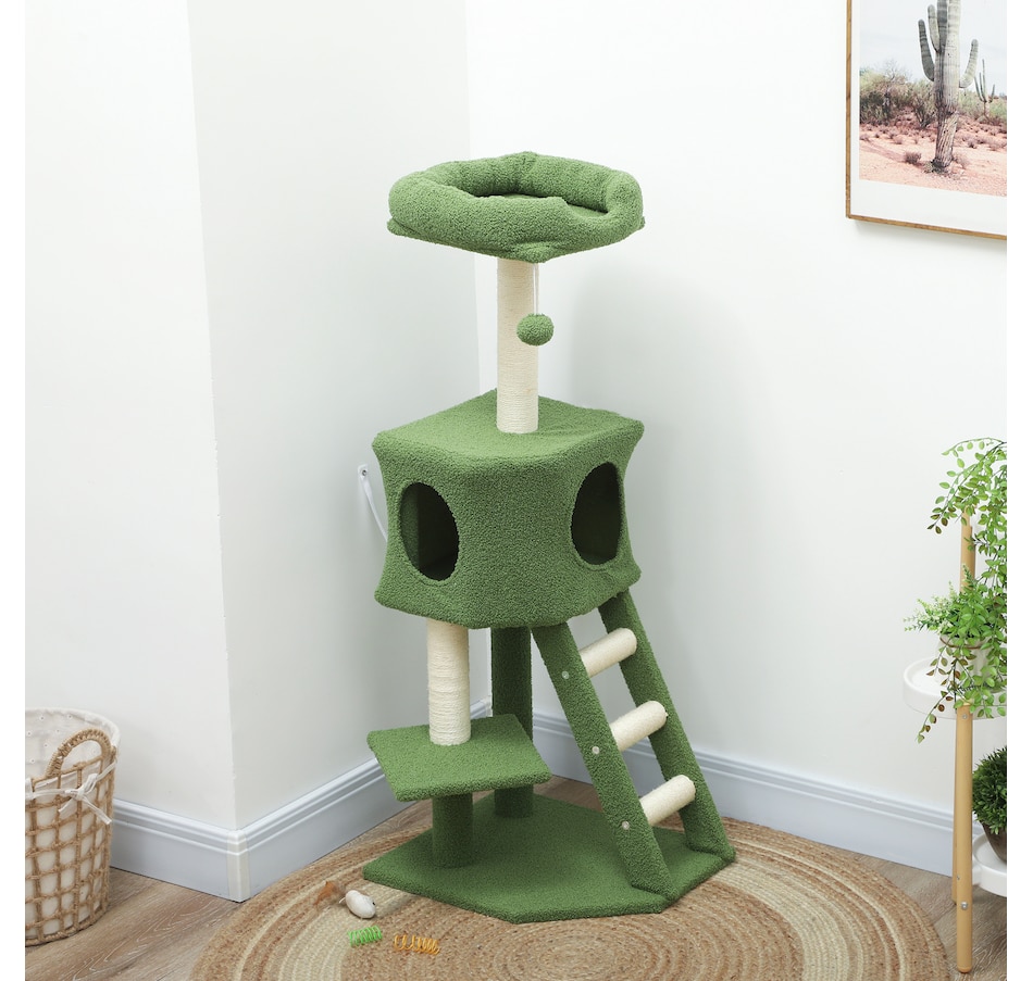 47" Cat Tree Tower with Condo, Ladder, Scratching Posts, Ball