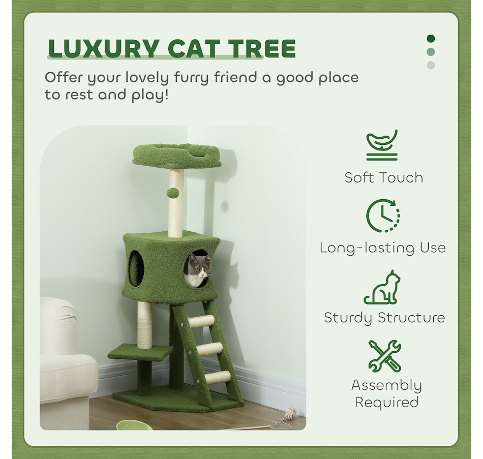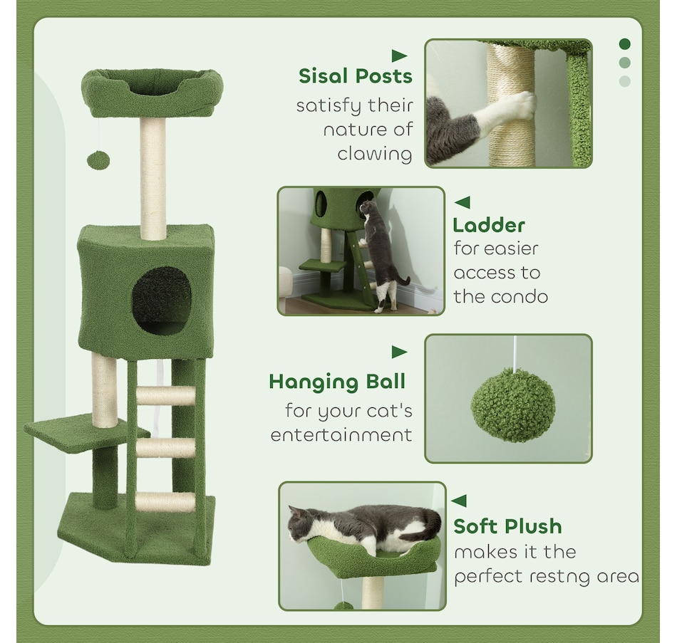 ● 1 Condo, 3 perchoirs, 1 balle suspendue et 1 échelle pour que votre chat dorme et joue ;