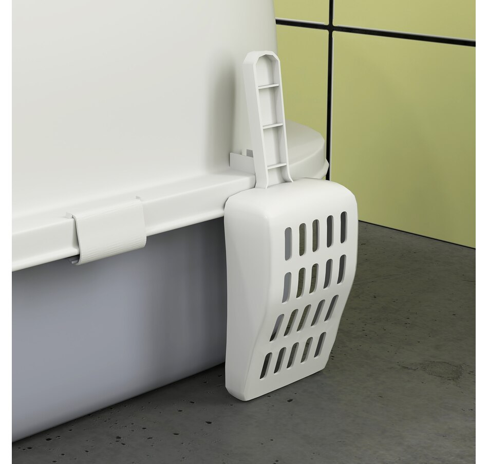 ● Enclosed design with translucent flap door ensures privacy and control odor;