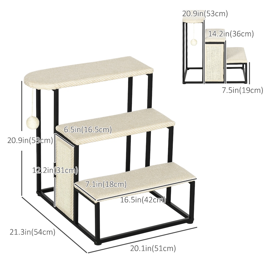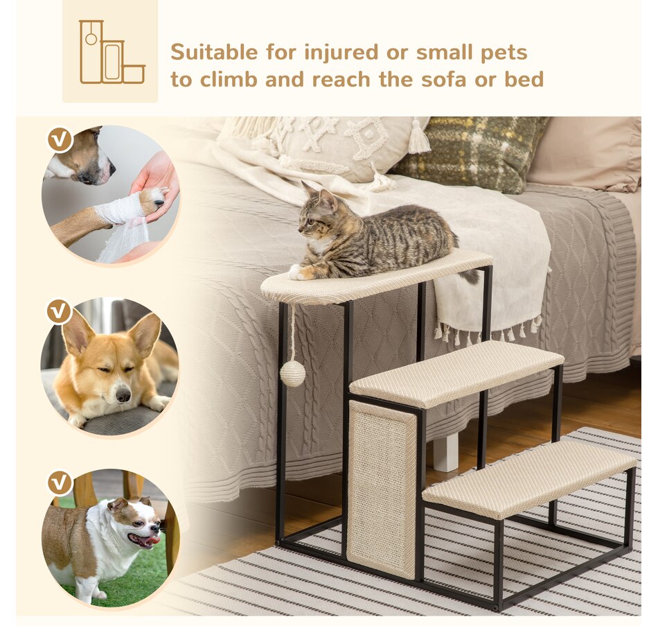 ● 3-step cat steps for older cats, apply the most height of bed or sofa;