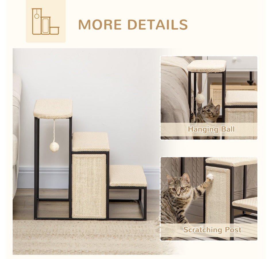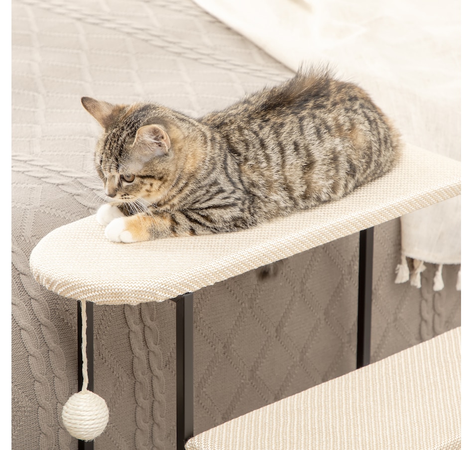 Do you know that allowing pets to climb up and down the bed can cause joint and knee pain? Especially for senior pets or pets with mobility issues. Training pets to use pet steps for sofa could be a viable solution. Our PawHut multifunction pet steps for cats encourage exercise by providing a safe place for kitty to leap, climb, scratch, jump and play that isn't your furniture, counters, or cabinetry. Your beloved furry companions enjoy climbing it.