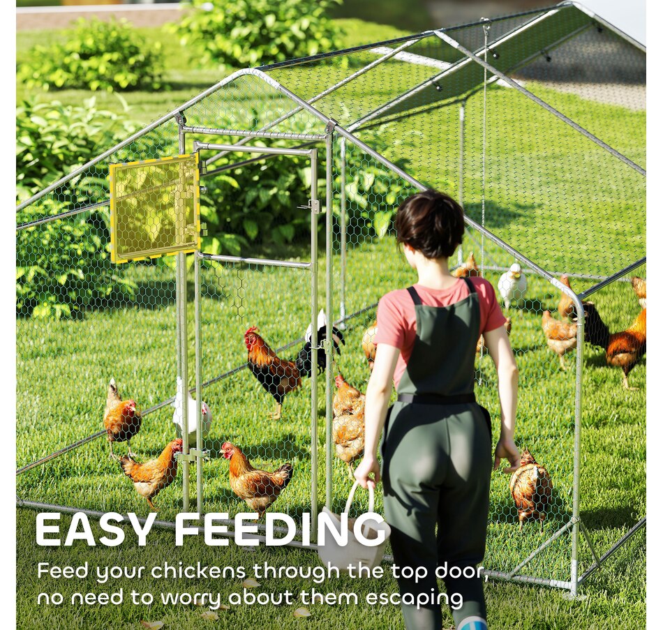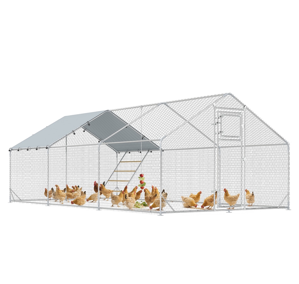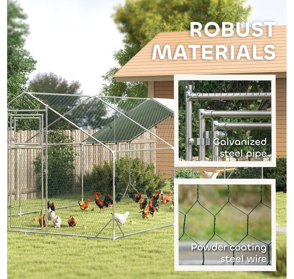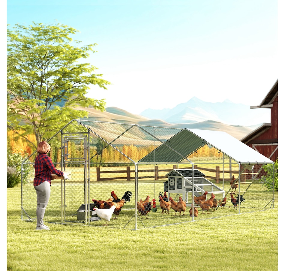 Chicken Run, Large Metal Chicken Coop w/ Cover for 18-24 Chickens