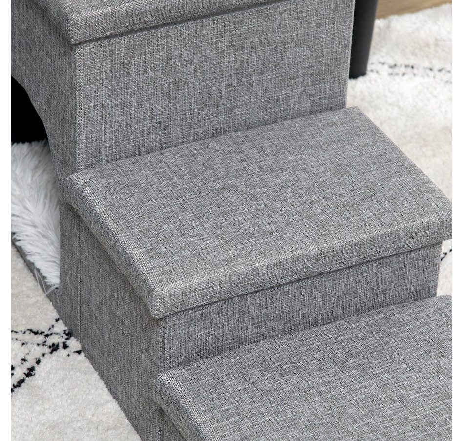 Dog Stairs with Storage Boxes and Condo for High Beds Couch, Grey