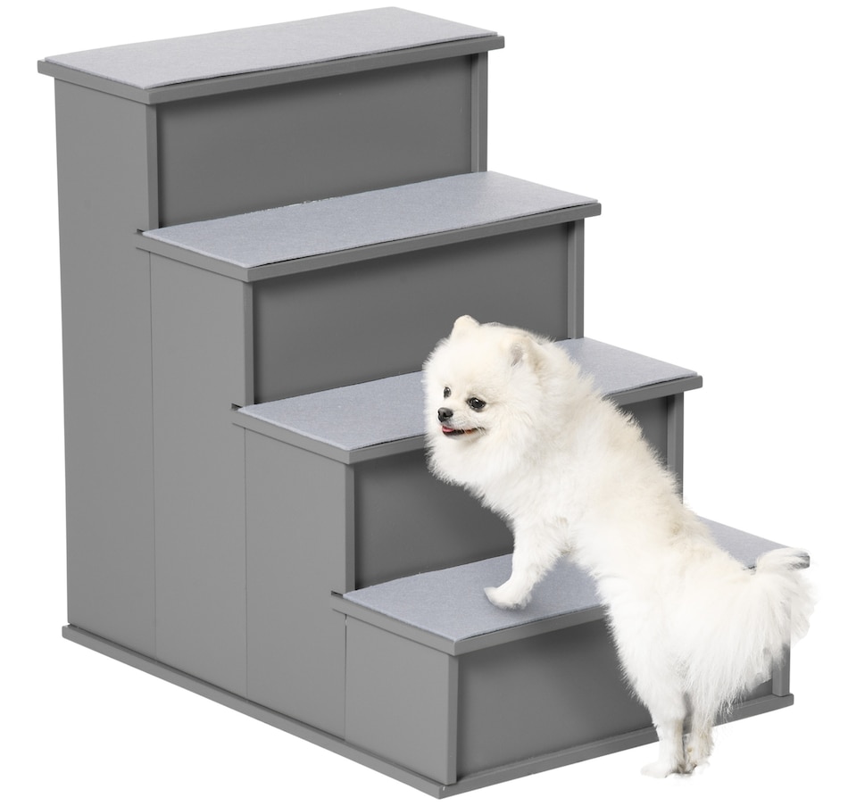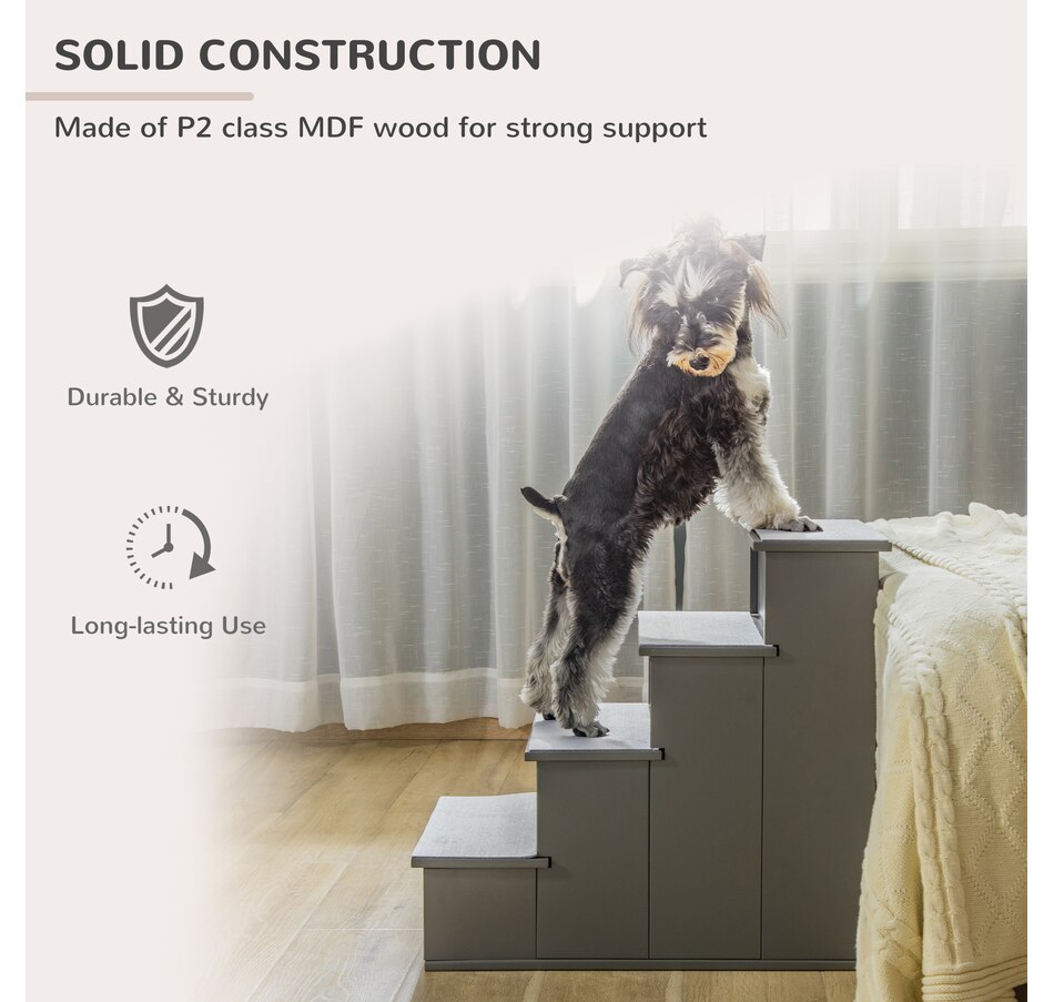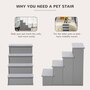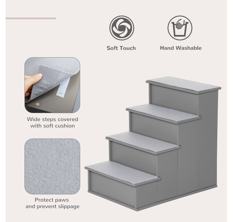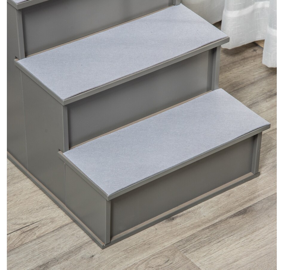 Dog Steps for High Beds, 4-Level Wooden, Grey, 21.3" H