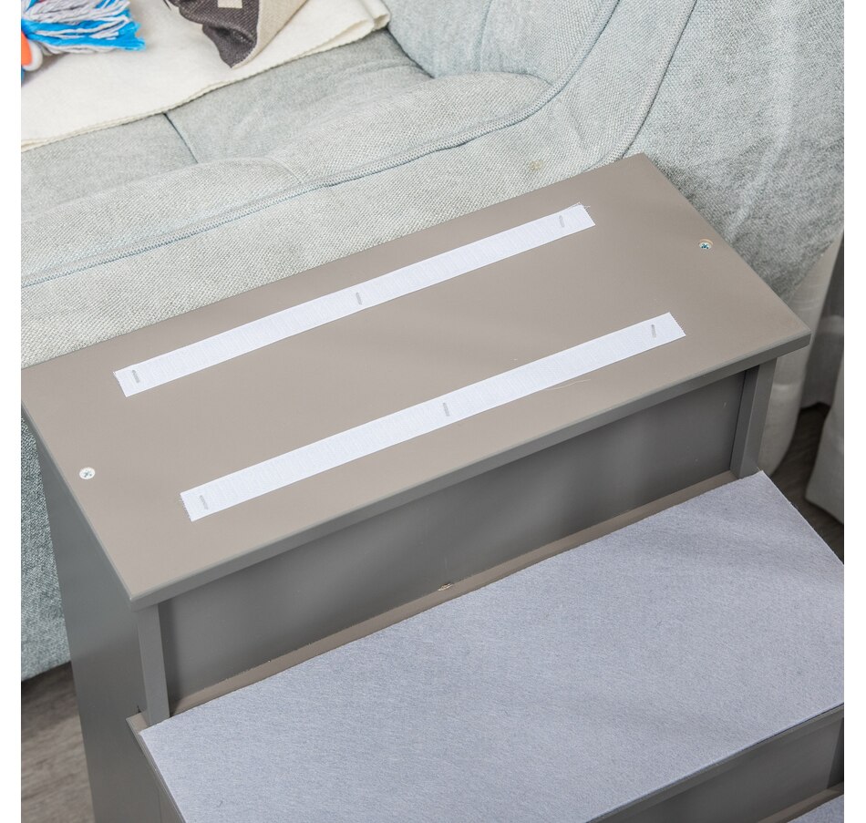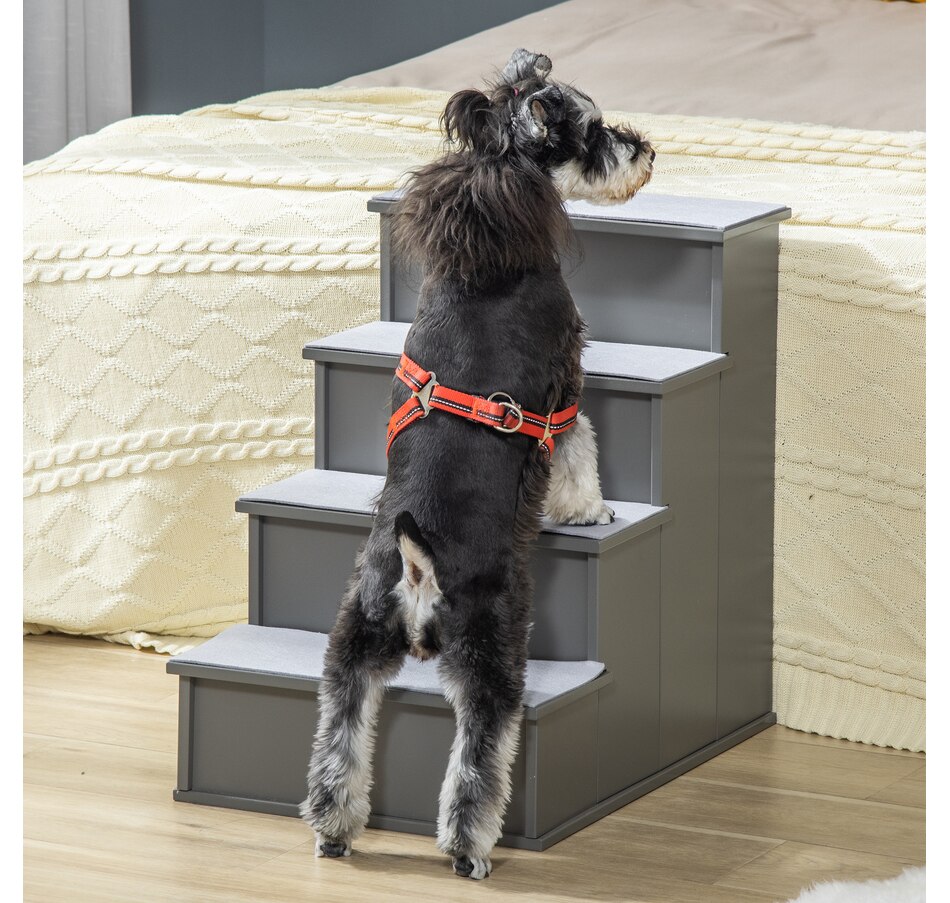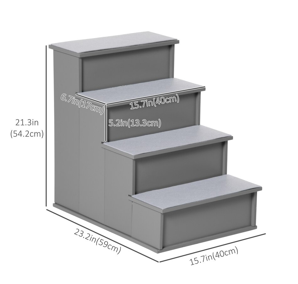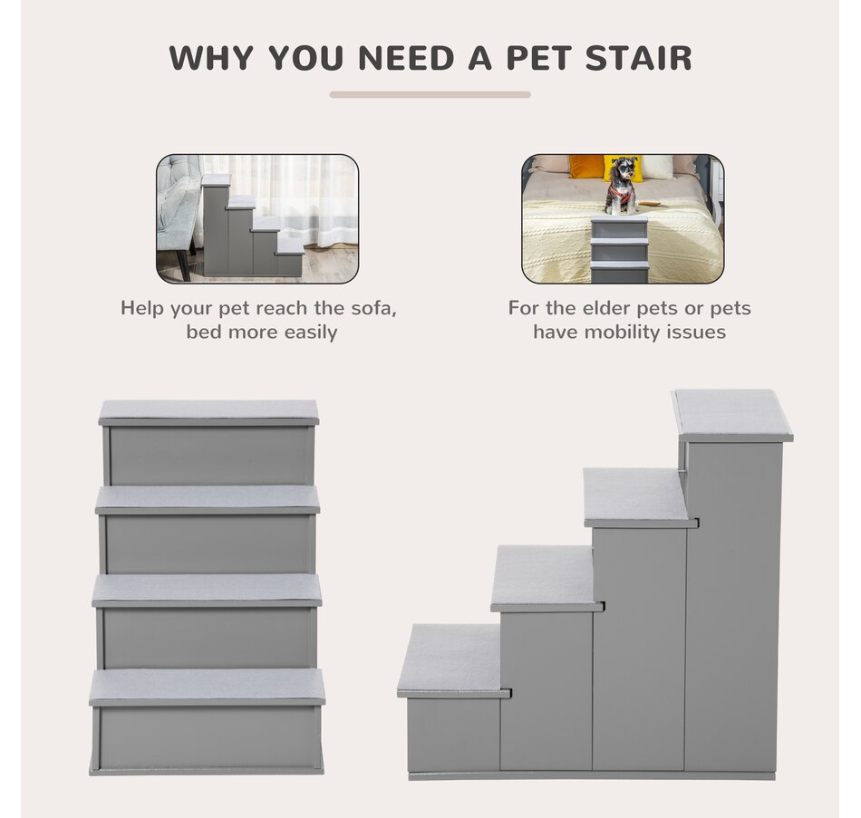 Dog Steps for High Beds, 4-Level Wooden, Grey, 21.3" H