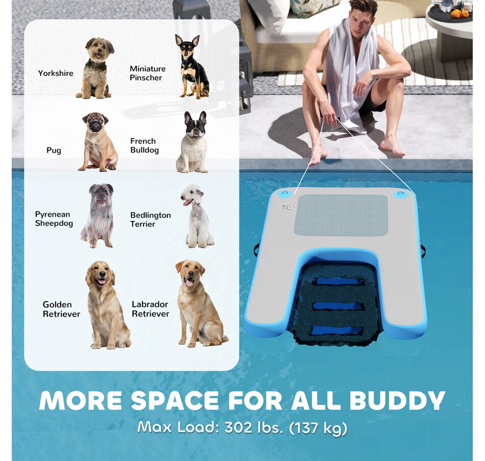 Make a splash with the PawHut Dog Boat Ramp! Crafted with encrypted fabric, this ramp gently sinks in water for easy entry and exit. Suitable for lakes, dog pools, or attaching to your boat or dock, it ensures safe climbs with its EVA non-slip surface. Dive into fun and safety with your furry friend!Features: