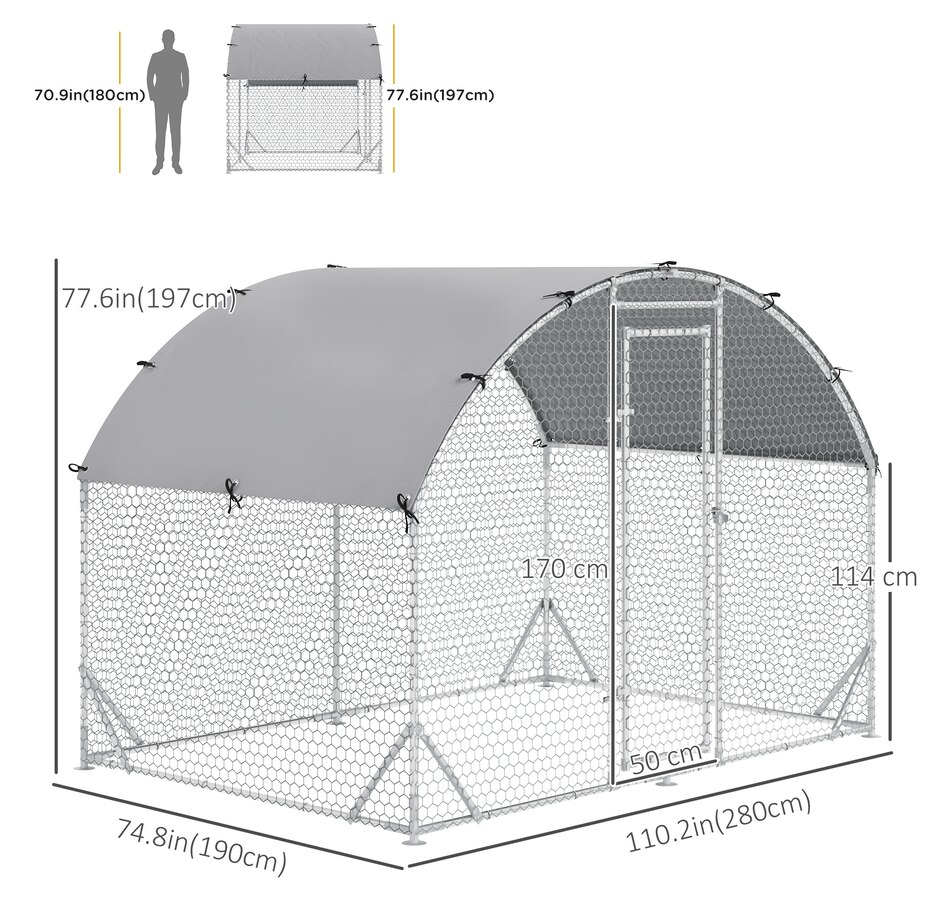 This PawHut walk in chicken coop has plenty of space, allowing a multiplicity of chickens. The top roof provides more robust protection against rain while ensuring UV resistance. The design is the walk-in height for comfort. Protect your chickens in a secure environment with enclosed wire mesh, keeping wild animals out. Let PawHut provide a happy house for your hens and other small animals.