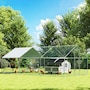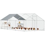 Transform your backyard with the PawHut Chicken Run, a spacious and secure 194 sq. ft. (18 m²) enclosure for 18-24 chickens. Featuring galvanized steel and UV-resistant fabric, it offers shelter and easy maintenance. The feeding door and included accessories create a comfortable, complete setup for your flock.