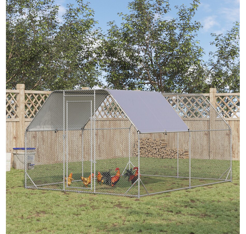 Metal Chicken Coop for 10-12 Chickens, Walk In Chicken Run with Roof