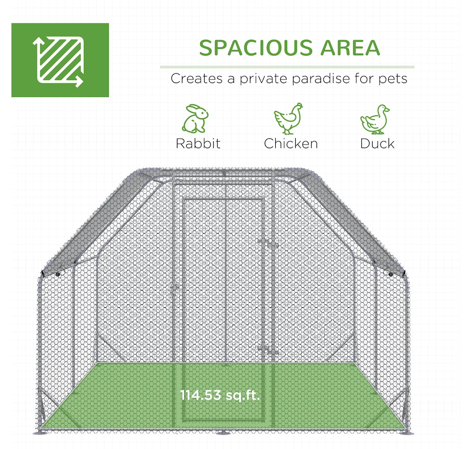 ● A spacious enclosure offers enough room for chickens, ducks, rabbits and more;
