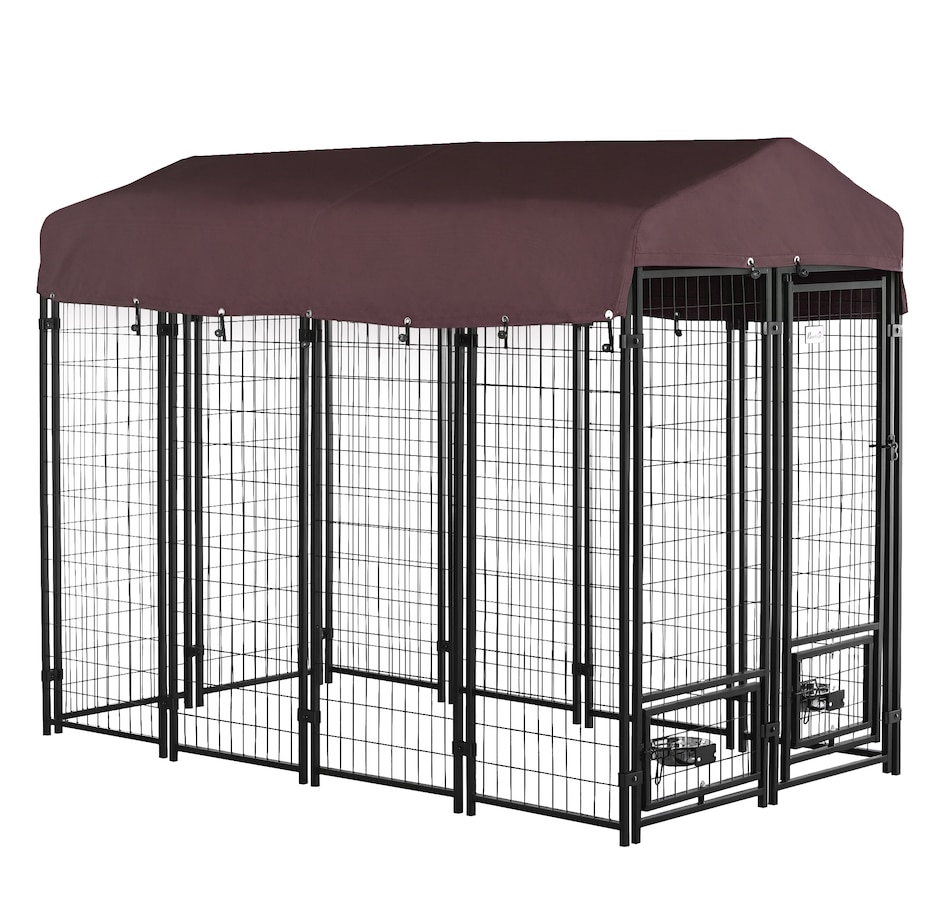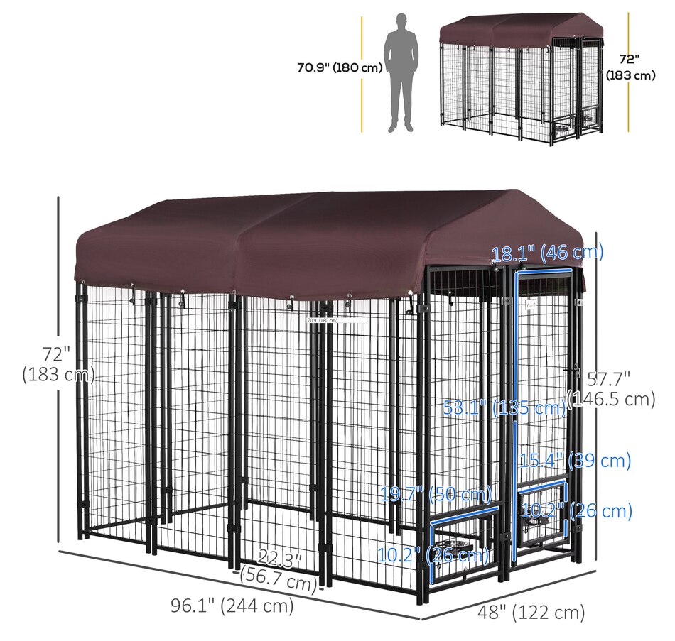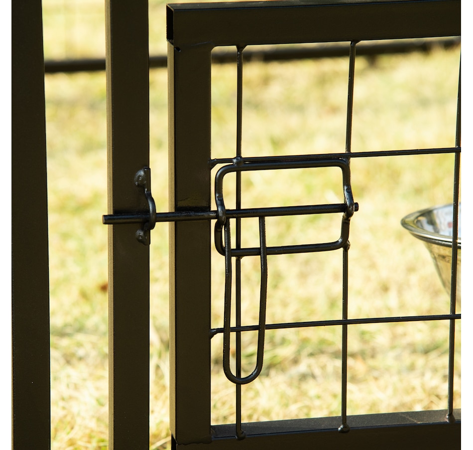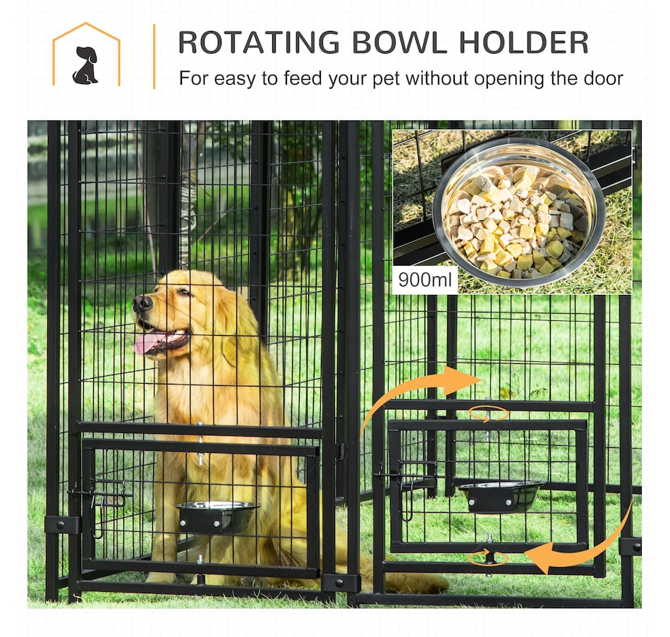 Get an excellent home for your furry friend with our PawHut dog kennel. Rust-resistant wire, top cover with solid metal roof frame, suitable height enclosure, and lockable gate with spacious room to satisfy all dog's need. Robust but easy to move outside or inside, easy to assemble or disassemble for transporting, almost zero maintenance all support a great practical kennel for your dog. Rest assured to settle your dog in the comfortable kennel and enjoy your leisure time.Features: