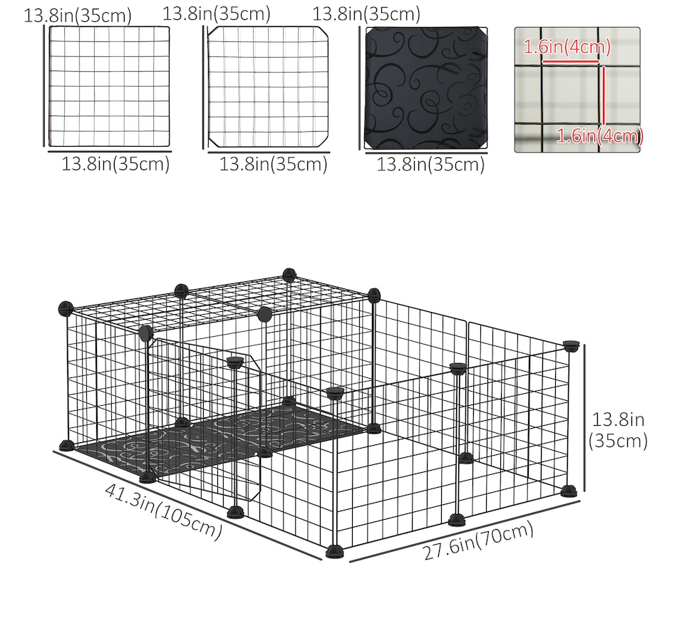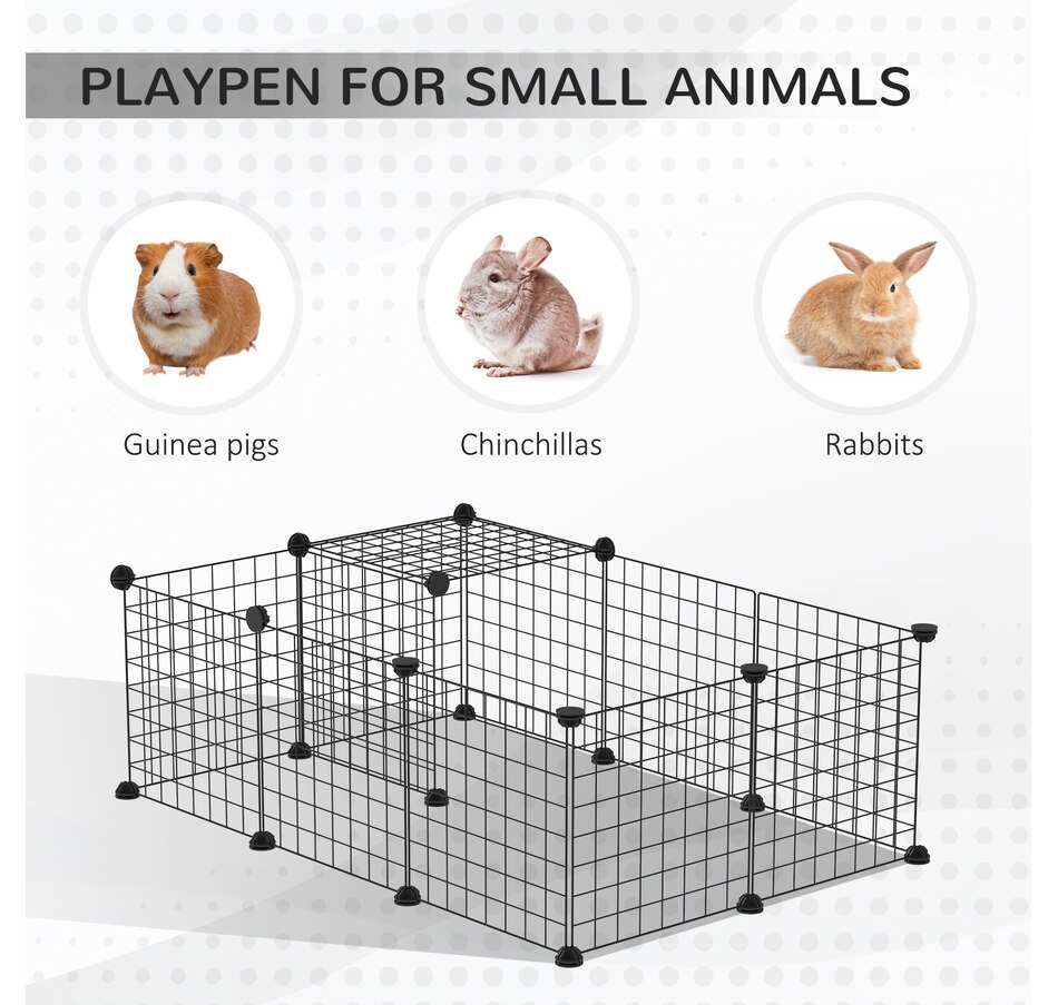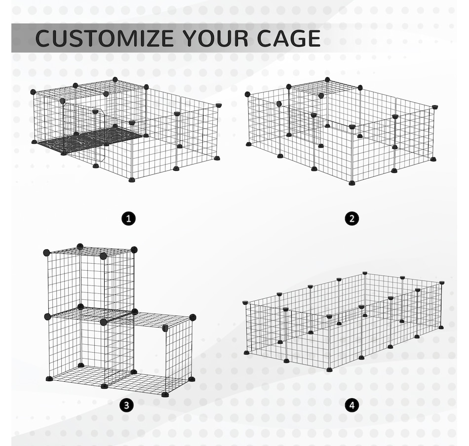 The PawHut bunny cage is designed to provide a tailor-made space for your pets. Thanks to the connectors, you can make up the panels any way you like and create a custom-made area for your little friends. The structure has a door to let animals in and out of the cage easily and is perfect for chinchilla, guinea pigs, bunnies and other small animals.