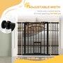 Create a secure and convenient space for your furry friend with the PawHut dog gate. Your feline friends will adore the handy small door, granting them easy passage. Keep your four-legged companion safe and enjoy peace of mind. It also serves as a versatile room separator, allowing you to create a dedicated space for your furry friend. Plus, with a clever auto-shut feature and a double lock system, this dog stair gate ensures safety and convenience for busy pet parents.