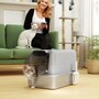 Tired of messy, smelly litter areas? The PawHut cat litter box with lid features a stainless steel tray and built-in sand filter, making cleaning effortless and keeping odours contained. With two filter bags, this enclosed cat litter box is suitable for cats under 13 lbs (6 kg)—enjoy a fresher, tidier home every day.
