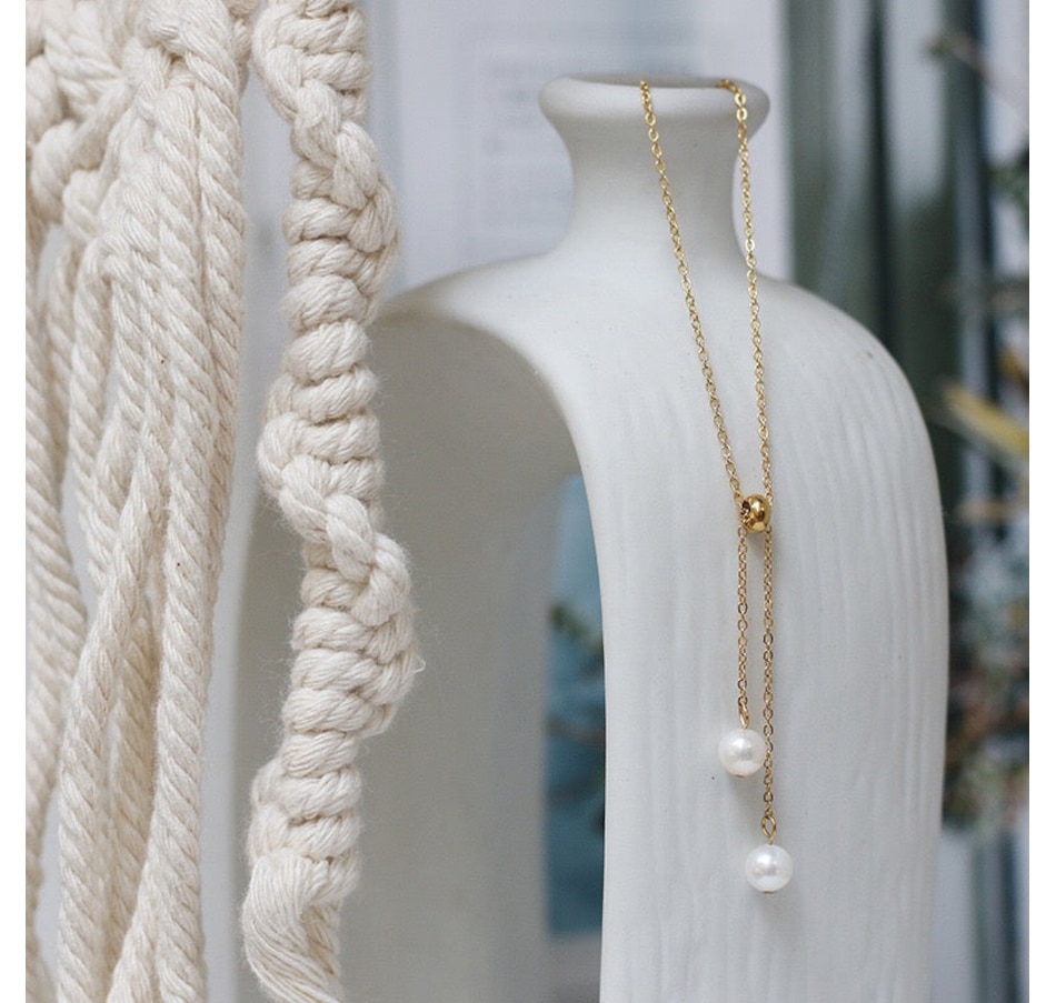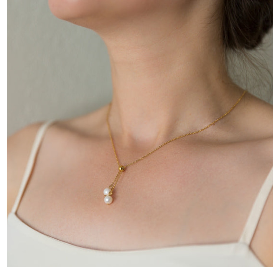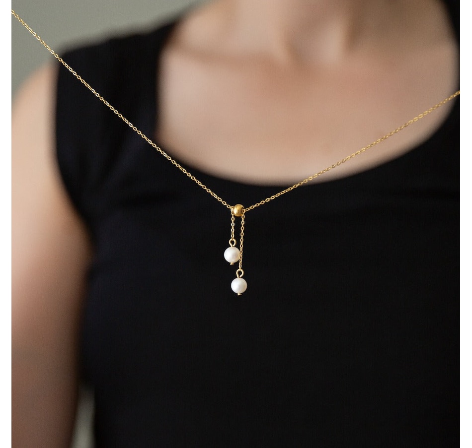 Wear the classic look of gold and white pearls with your ensembles with the Pearl Drop Necklace from . Perfect for any occasion. Product Details:SKU: J-PRLDPNECKGLDMaterial: Stainless SteelColor: Gold PlatedClosure: Lobster ClaspOverall Length: 16.5 inches 2 inch extensionPearl Drop Length: Adjustable by pulling through the gold ringPearls: ImitationPackaging: Gift BoxA portion of sales of the Pearl Drop Necklace for women goes to charitable causes. Be Good, Do Good! For more information on our charitable giving, please visit Gives.Â