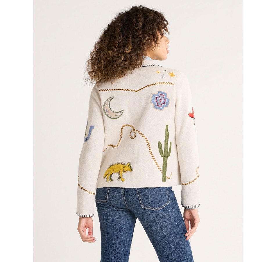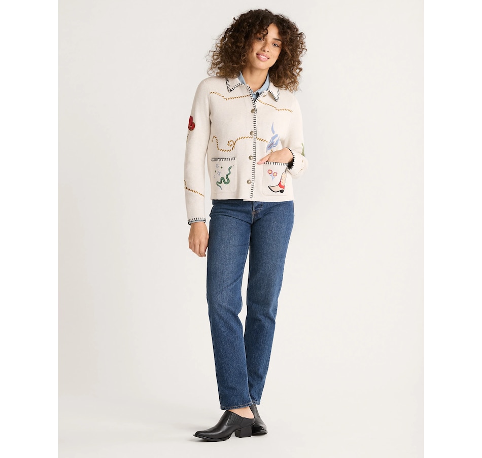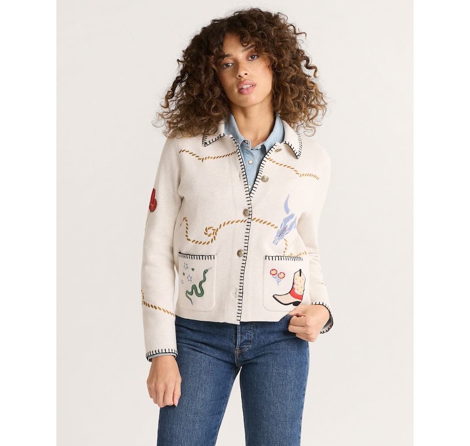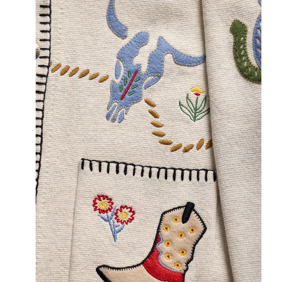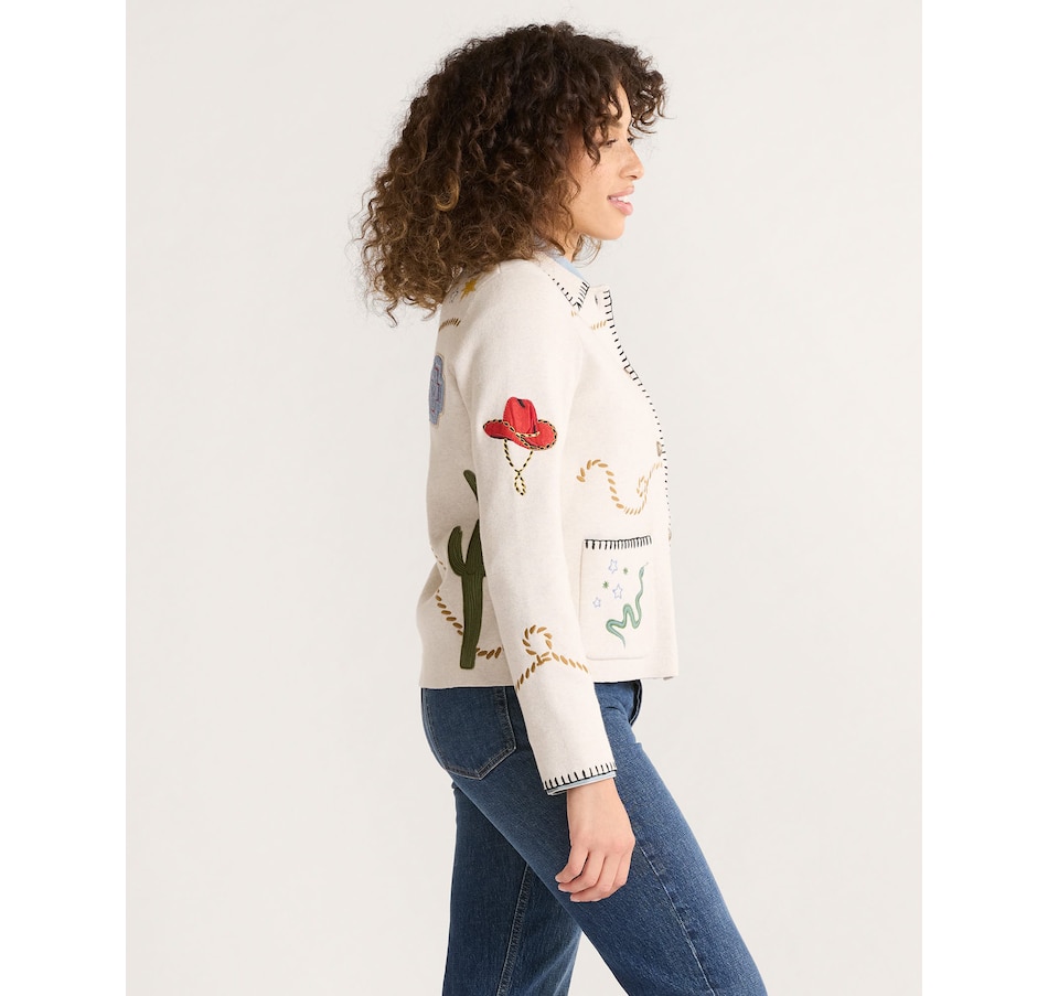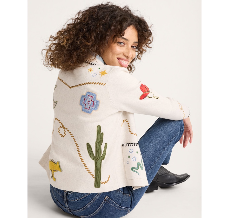 Fun and stylish with a Western motif, you'll add something special to every look wearing this souvenir cardigan.