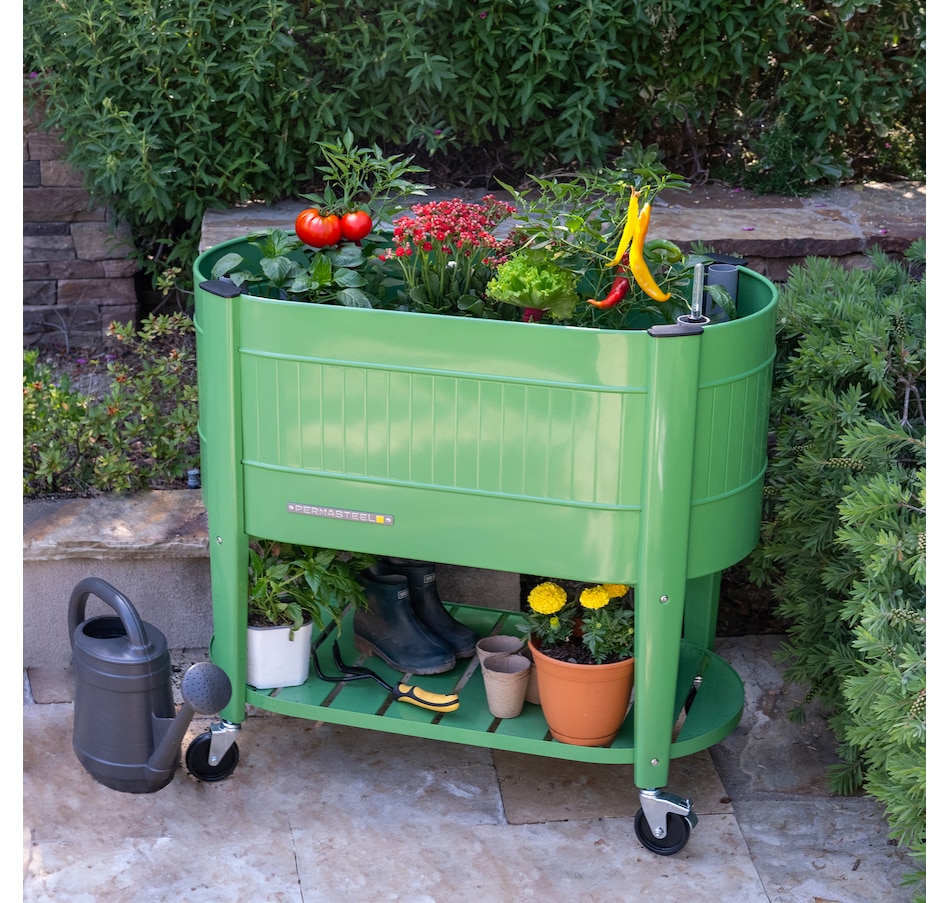 Transform your gardening experience with Permasteel’s elevated garden bed, a must-have for your home garden! Crafted with cutting-edge Engrow technology, this raised planter helps with optimal growth of veggies, flowers, and herbs. Its sturdy powder-coated steel construction and unique Eco-Chamber design promote natural air circulation and efficient water drainage. The built-in water level indicator means precise hydration, while the soil platform provides essential plant support. Enjoy easy mobility with casters and convenient storage with the bottom shelf. Plus, it’s easy to assemble too!