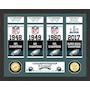 This unique collectible frame features minted coins and commemorative Eagles championship banners. Featured in a beautiful wood frame with custom cut matting are the Philadelphia Eagles Banners commemorating their three NFL titles and Super Bowl Title. Matted below the banners is a minted 39mm Philadelphia Eagles commemorative bronze coin and a 39mm NFL commemorative bronze coin. Each frame is accompanied by a Certificate of Authenticity. Officially Licensed by the NFL. Proudly made in the USA by The Highland Mint!