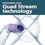 • Quad-Stream tip: creates four wide streams of water for a thorough clean between the teeth and along the gum line